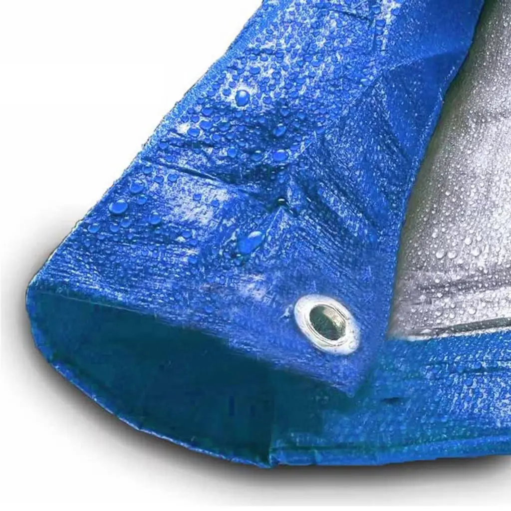 These Moose Supply Outdoor Blue Poly Tarp Covers with Grommets are the versatile, multi-purpose, waterproof tarps that are great for just about any job you throw at them. Whether it's protecting your possessions from the elements, creating a temporary camping shelter, for use as a ground cover on concrete, a surface protector when painting or as a car/truck/boat/motorcycle cover ... there really just isn't any task that these tarps are not equipped to handle. These blue poly tarps are constructed from 5 mil thick polyethylene material with a 8x8 weave. Moose Supply blue poly tarps have heat sealed seams and rope reinforced hems for added durability and also feature rust resistant grommets approximately every 3 feet for secure tie downs. These tarp covers have arctic flexibility and are laminated to resist water, rot, acid and tears. Moose Supply tarp covers are great for construction sites, landscaping jobs, and protecting tools and supplies. They are ideal for use with inflatables such as bounce houses, obstacle courses and wet/dry slides. Apply underneath to protect from wear and tear caused from direct placement on top of concrete and blacktop and to keep clean from grass and dirt. They are also useful for temporary tarp covers or short-term solutions. Recommended Usage: Ground protection for inflatables, Ground cover underneath pools, Surface protector for painting projects, Trailer covers, Outdoor Canopy and Camping, Landscaping and Construction Use, Temporary Shelters, Roofing tarp, Storage