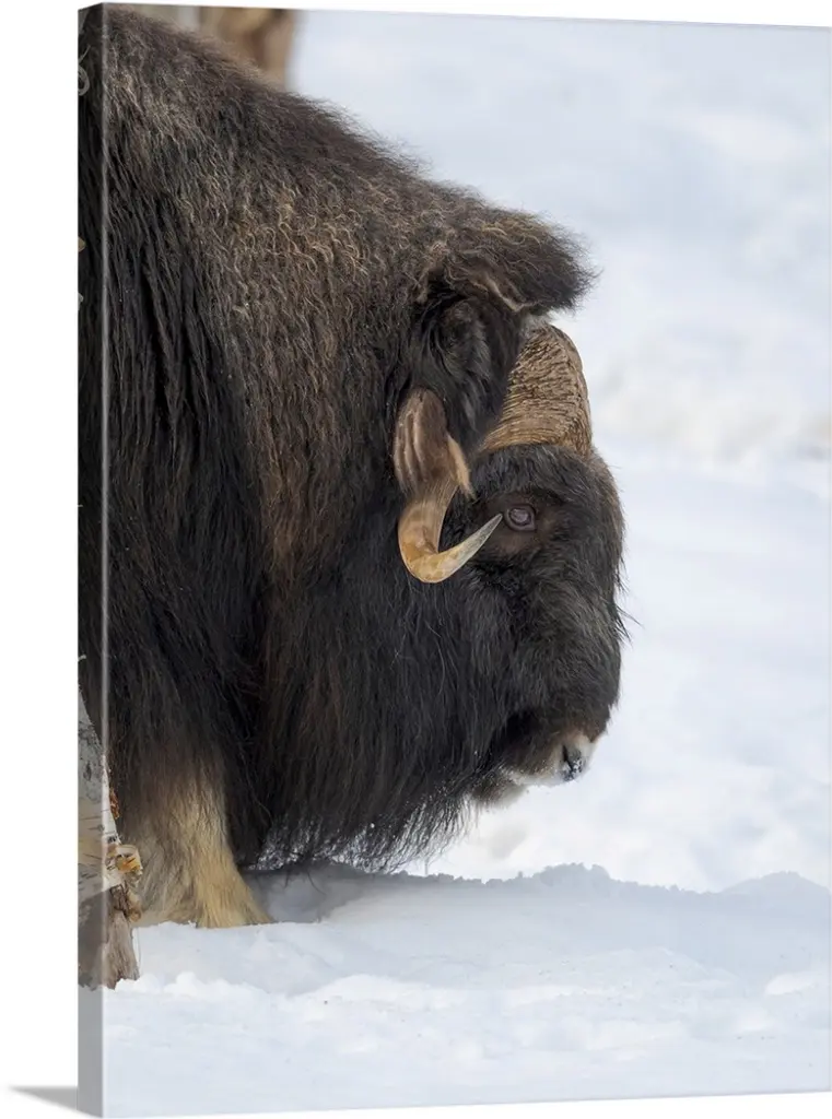 Mature bull moose (alces alces) with antlers shed of velvet walking in snow, Alaska wildlife conservation center, south-central Alaska, united states of America.