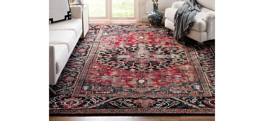 The Vintage Hamadan Collection's Jahan Area Rug brings a refined look of antiquity to today's exciting home decor with richly colored Persian area rugs. This rug features high-performance, durable construction making it resistant to pulls from playful pets and under normal, household conditions, this rug is resistant to shedding. Safavieh works with product safety research and test institute OEKO-TEX to ensure that this rug has passed Standard 100 by OEKO-TEX tests for harmful substances to ensure that it is harmless in human ecological terms.