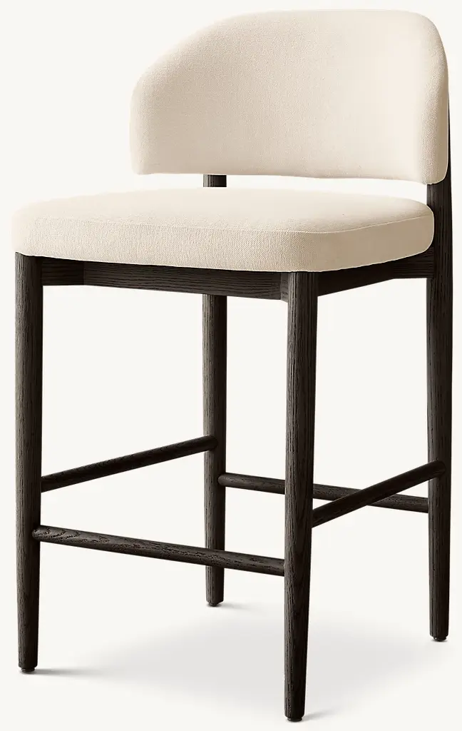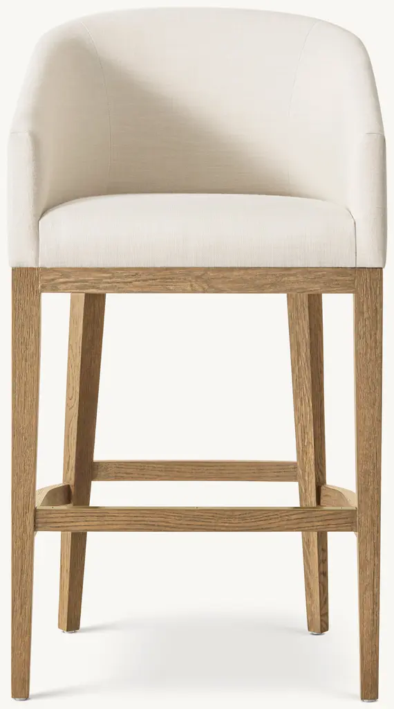 Tapered legs – a signature of midcentury design – complement our stool's striking silhouette. A wooden frame supports the impeccably upholstered seat and back, providing visual contrast and warmth. Plush foam cushions provide the perfect combination of comfort and enduring support. ALSO AVAILABLE IN LEATHER SHOP THE ENTIRE COLLECTION