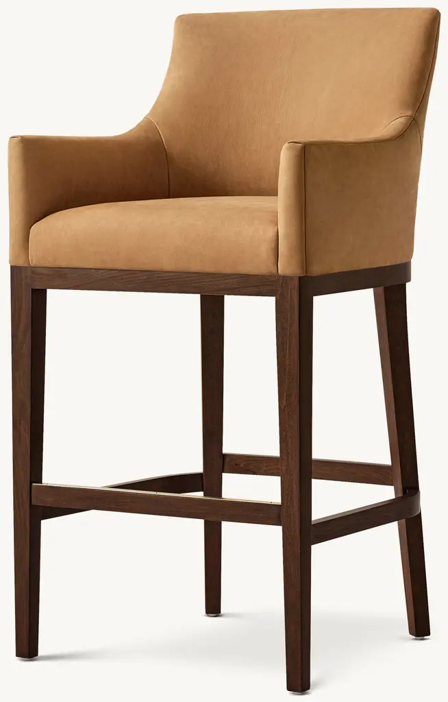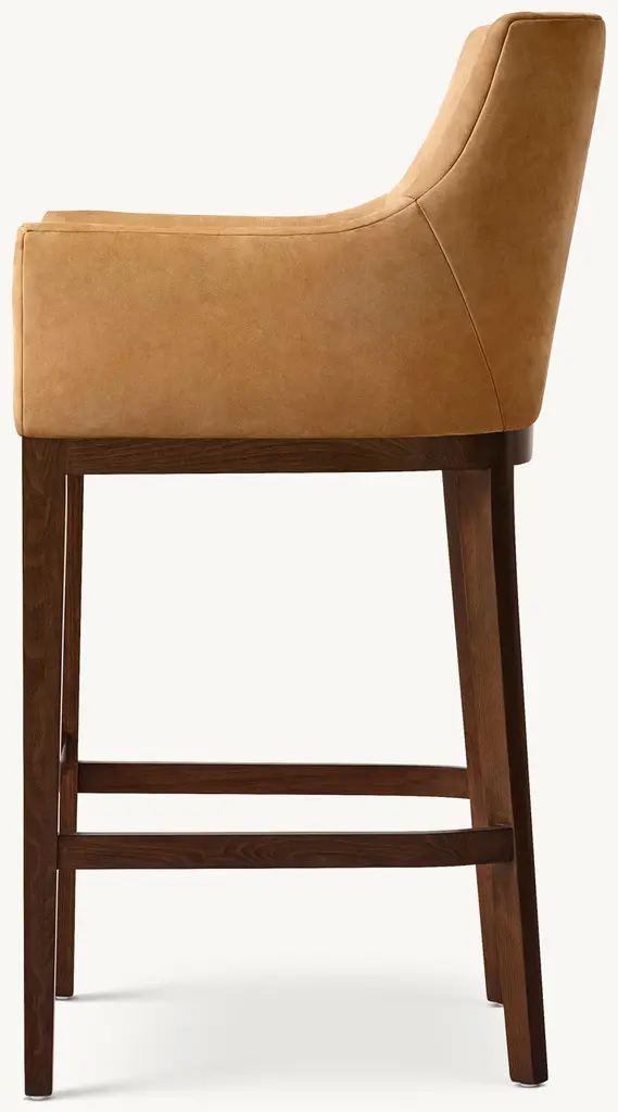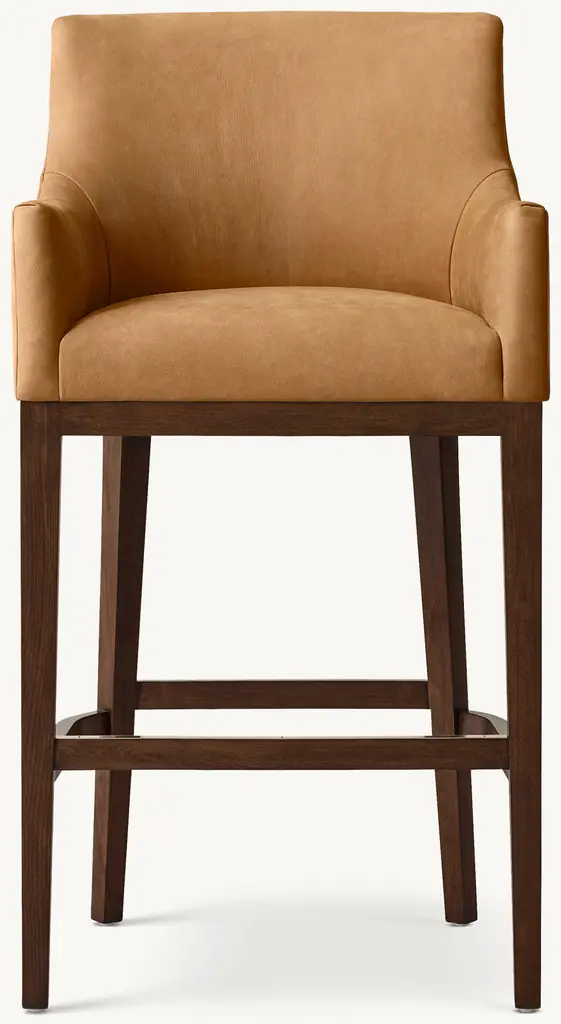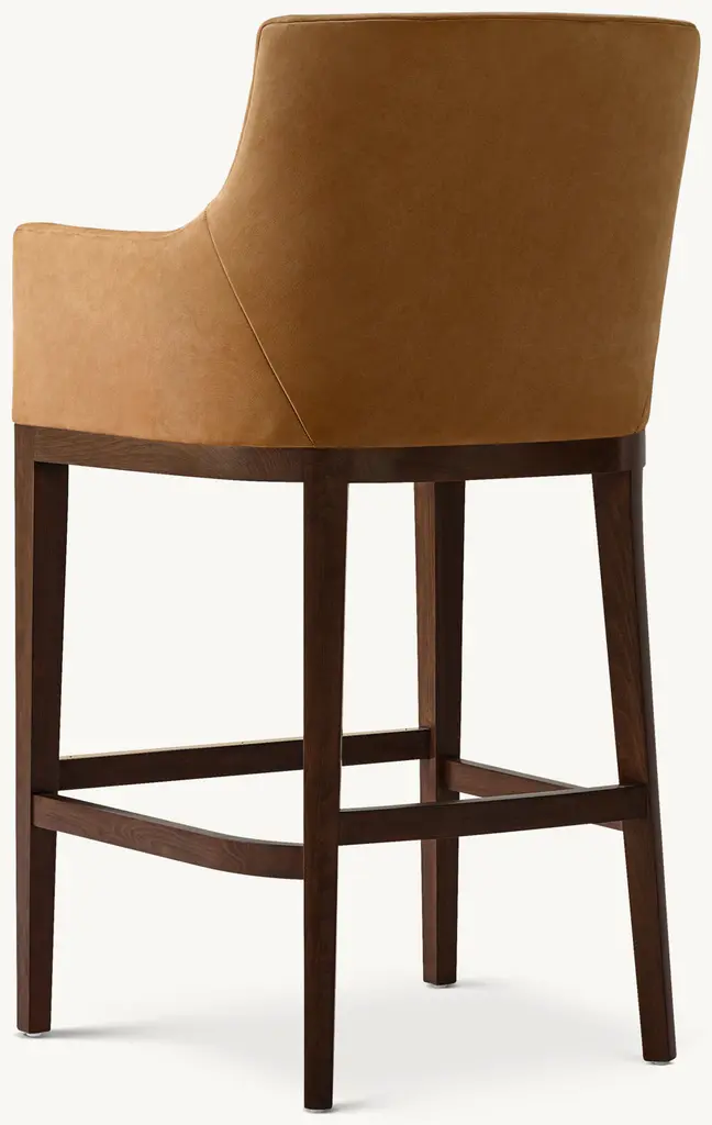 Tapered legs – a signature of midcentury design – complement our stool's striking silhouette. A wooden frame supports the impeccably upholstered seat and back, providing visual contrast and warmth. Plush foam cushions provide the perfect combination of comfort and enduring support. ALSO AVAILABLE IN FABRIC SHOP THE ENTIRE COLLECTION