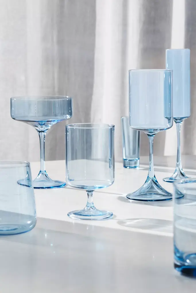 Discover the entire [Morgan Glassware Collection by AnthroLiving]( https://www.anthropologie.com/morgan-collection). Delight dinner guests with a colorful tablescape using these chromatic glasses. Please note: The composition of borosilicate glass allows for beautiful transparency and thermal stability but can make it more susceptible to cracking and breaking. Please handle this style with care!
