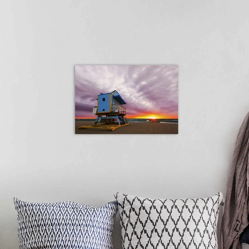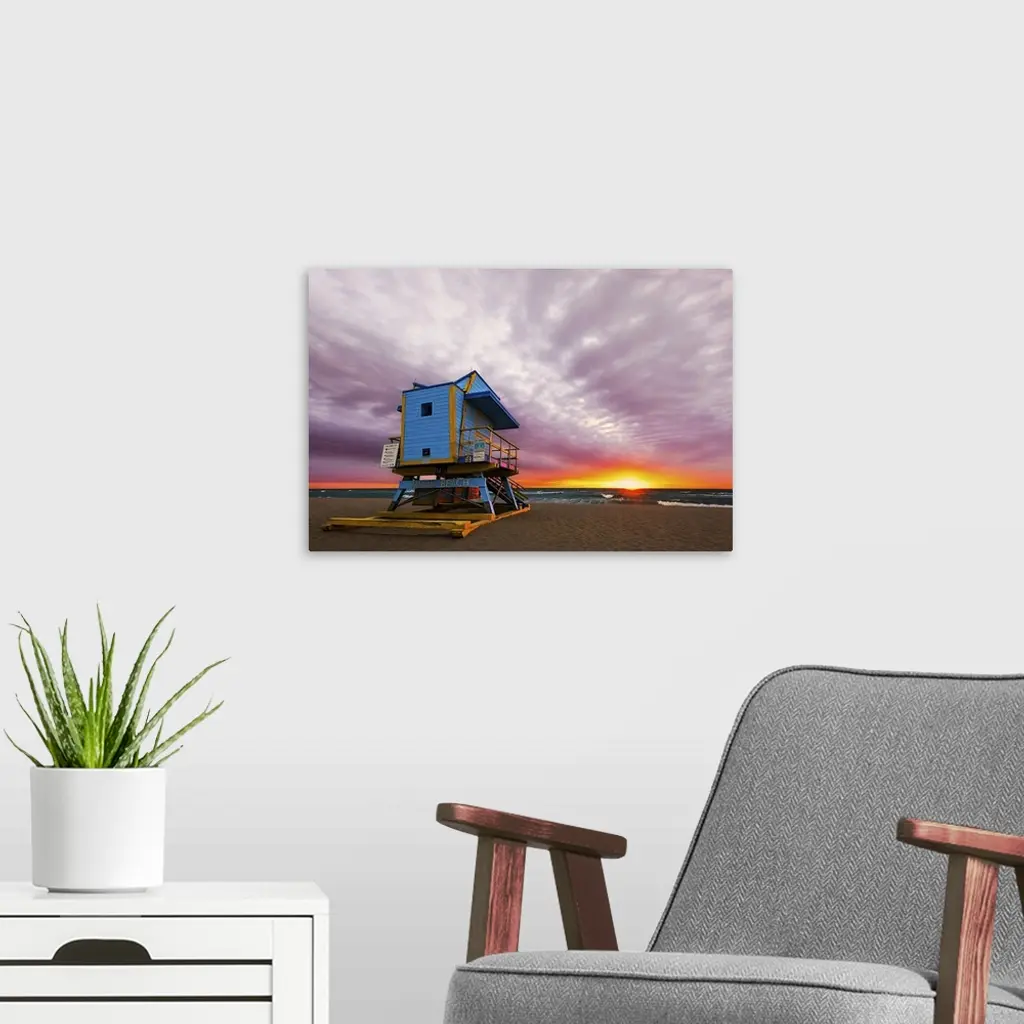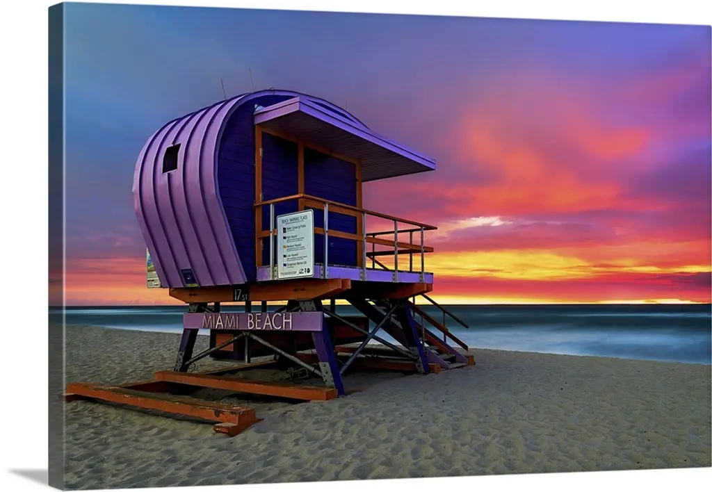 Miami Beach's 14th Street Lifeguard station faces sunrise over the Atlantic Ocean.