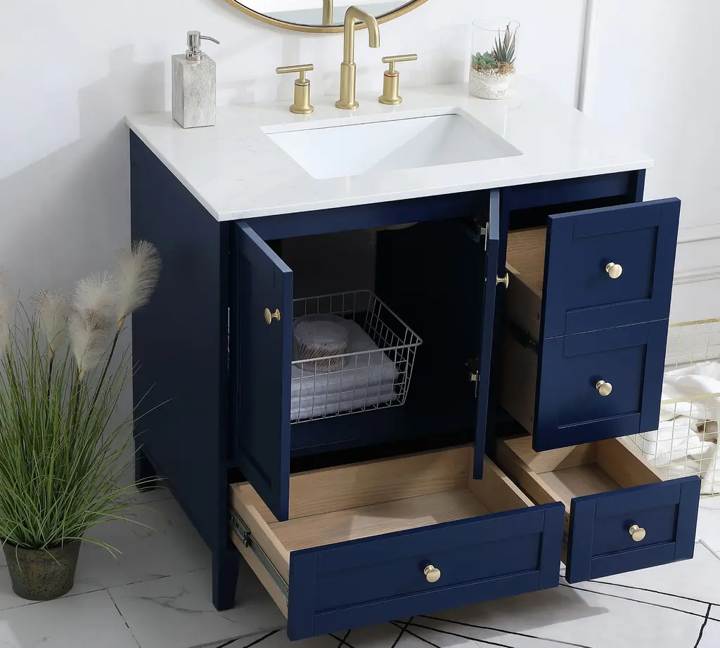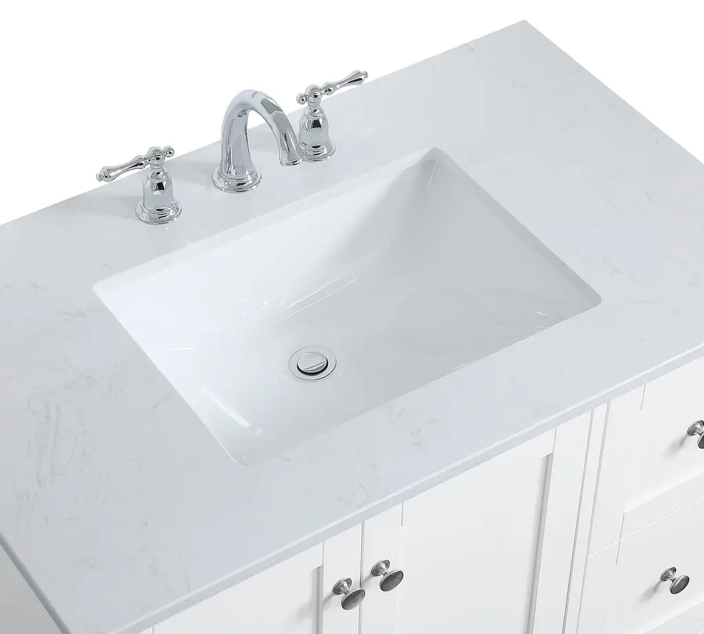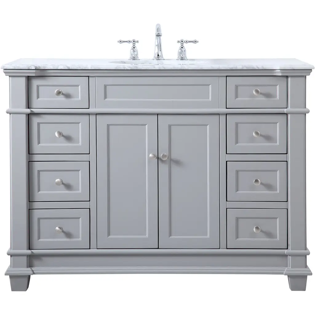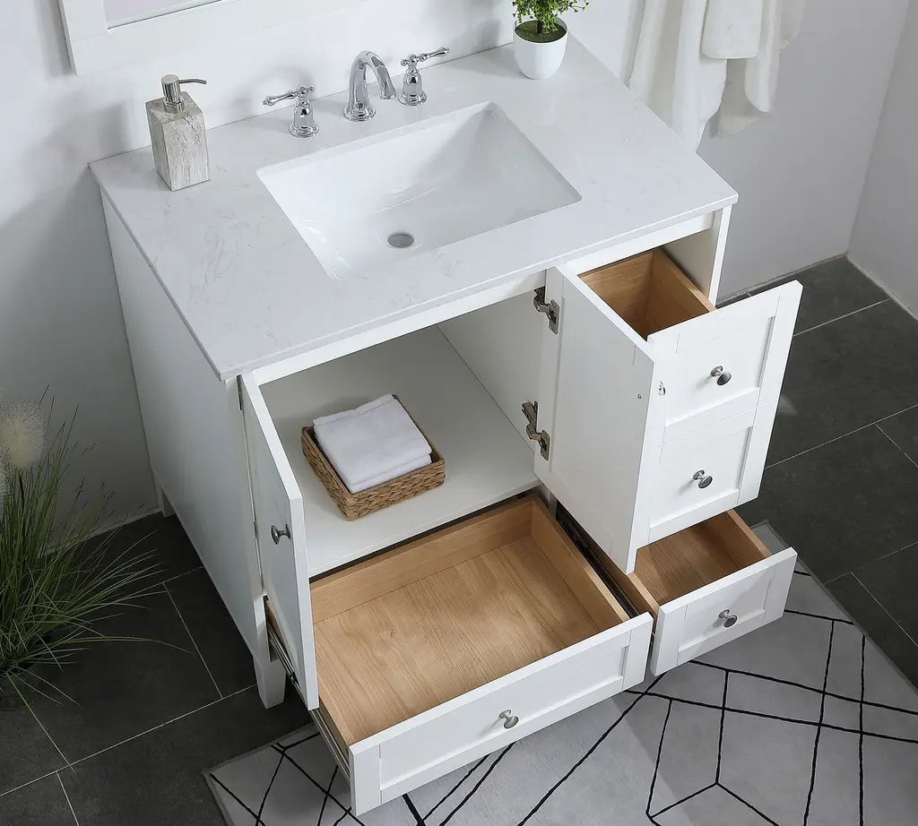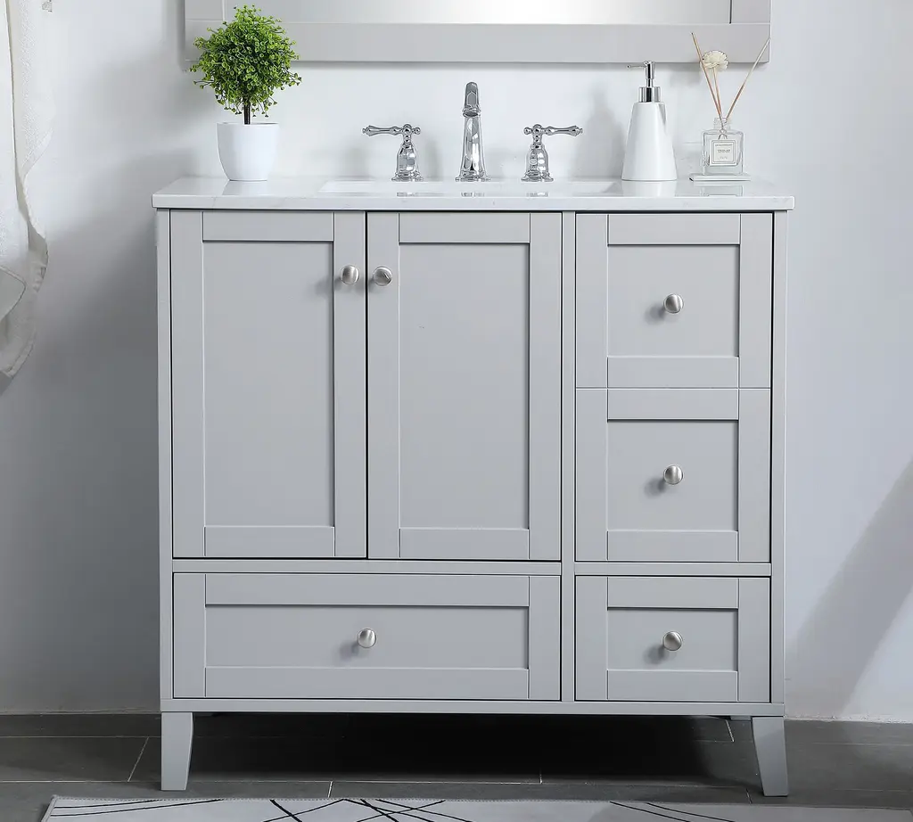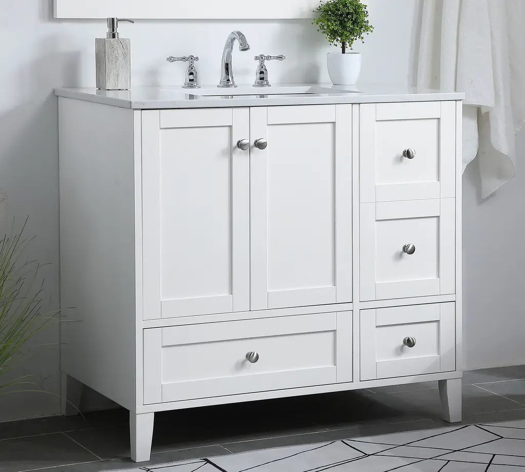 Combining a timeless look and gleaming hardware, Moro is all about refined luxury. Complete with a porcelain sink and a Calacatta quartz countertop, it sets a stunning stage for your daily self-care routines.