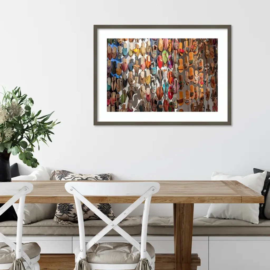 "Walk in Style" with this eye-catching, single piece art from Richard Silver. Crafted with a blend of solid and engineered wood, its acrylic frame creates a glossy, polished finish. This photographic print brings to life an array of colorful shoes - an ode to fashion lovers! Incorporate this landscape-orientated art into your living space for a hefty dose of creativity. Plus, it's made to order, ensuring a unique piece just for you.