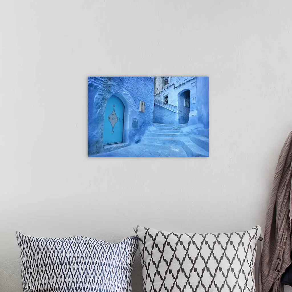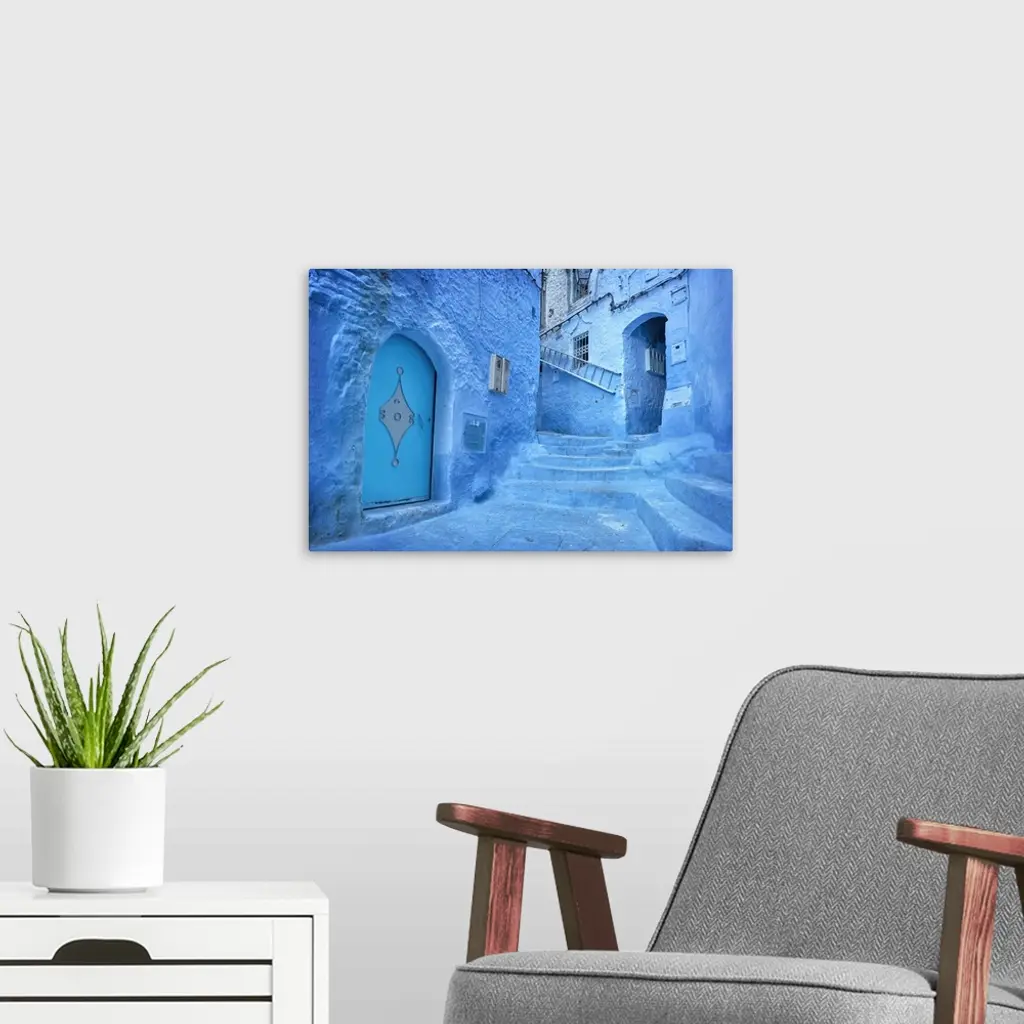 Morocco, Rif Mountains, Chefchaouen, Typical Blue Painted Houses In The Old Town