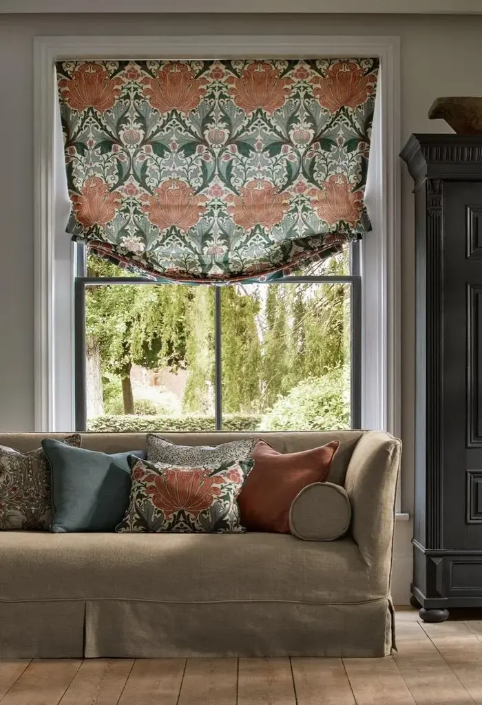 Morris & Co Helena Fabric In Peach/teal