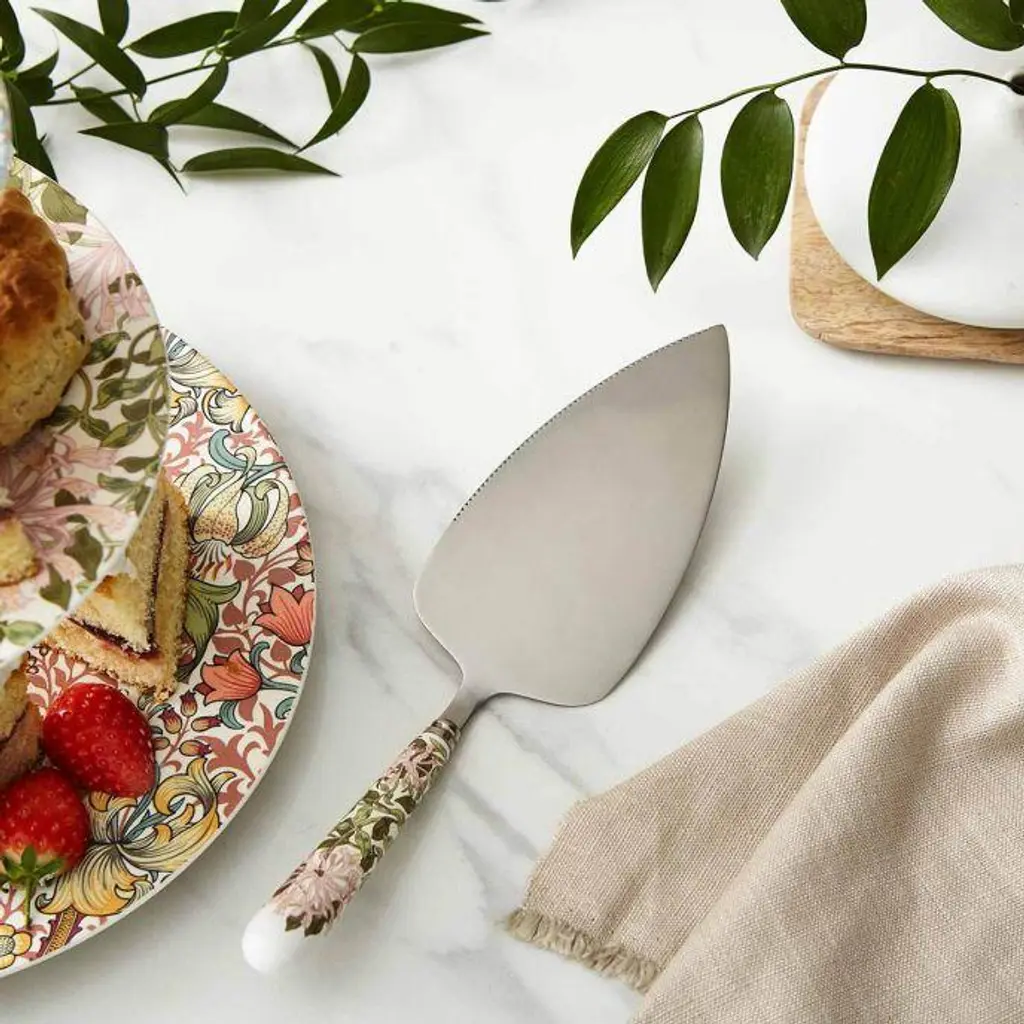 From birthdays to weddings, the Morris & Co. Honeysuckle Cake Slice is a beautiful touch to any event. Made from stainless steel with a porcelain handle, this decorated cake slice is adorned with Morris & Co.’s heritage Honeysuckle design. Presented gift boxed, this cake slice will make the perfect gift for any cake lover or baker. So whether you’re partial to a slice of Victoria Sponge, or chocolate is your cake of choice - this unique cake slice will add an extra special touch to any bake. Material: Ceramic 41% Stainless Steel 59%