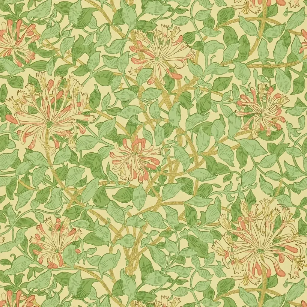 Honeysuckle was designed by William Morriss daughter May in 1883 and is a realistic arrangement of rambling flowers and entwining leaves. Screen printed on a cotton/linen blend and reproduced for the Queen Square collection in two new colourways Summer shares a naturalistic archive inspired look compared with Chocolates autumnal creams and pops of vibrant orange. 51% Cotton 49% Linen. Sold by the yard. Part of the BEN PENTREATH THE QUEEN SQUARE FB Collection. Vertical Repeat: 17.992125984252 Horizontal Repeat: 17.992125984252 Aftercare Codes: No Machine Wash - SDC / No Ble / No tumb / W Iron / Iron Rev / SDC (Spec) This item is non-refundable, but swatches are available for purchase. Colors can vary from screen to screen; we recommend ordering a swatch before placing your full size purchase. For any questions, please reach out to swatches@chairish.com