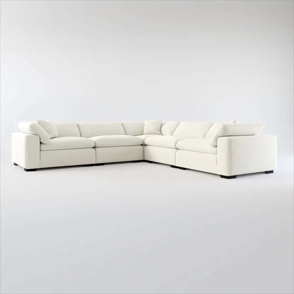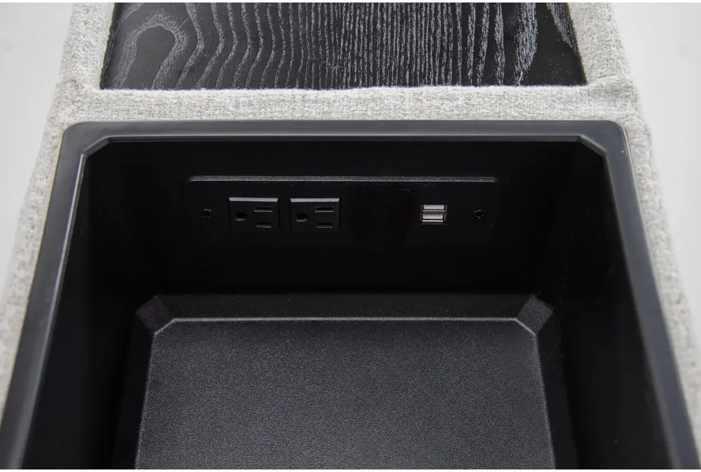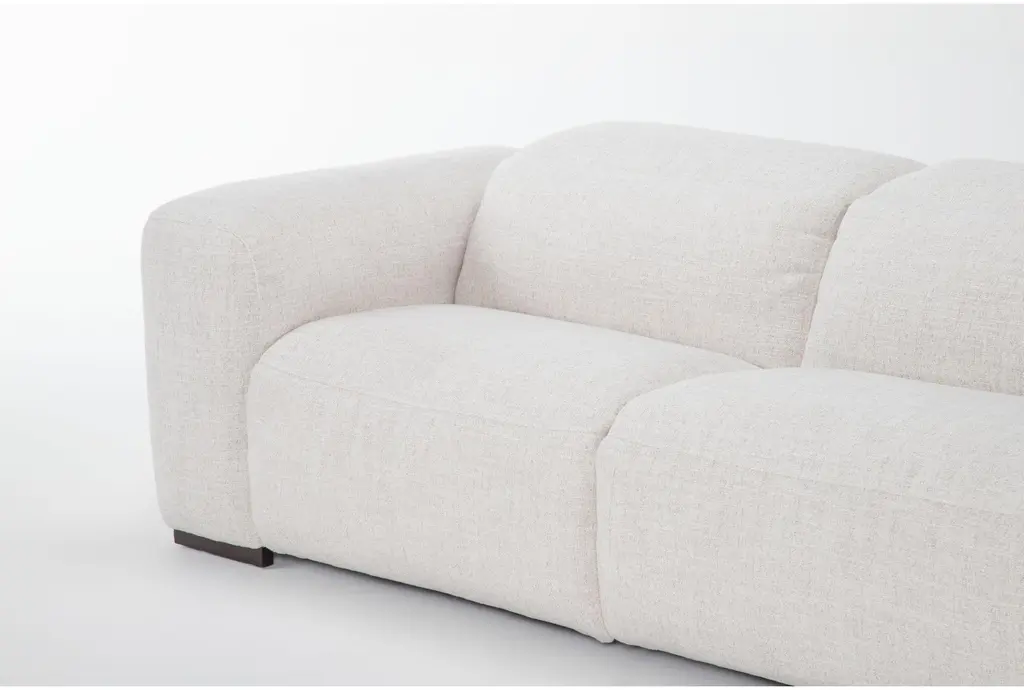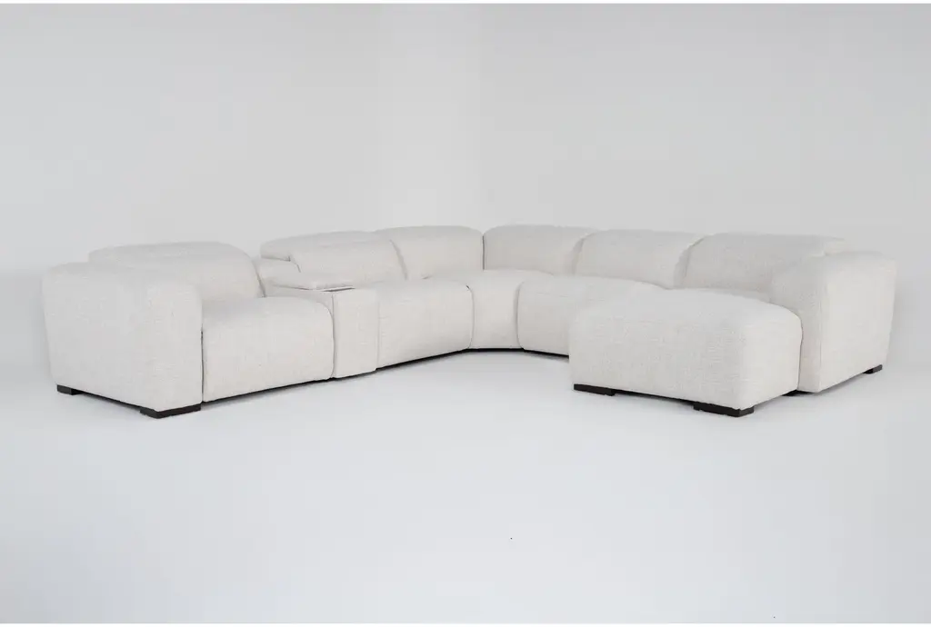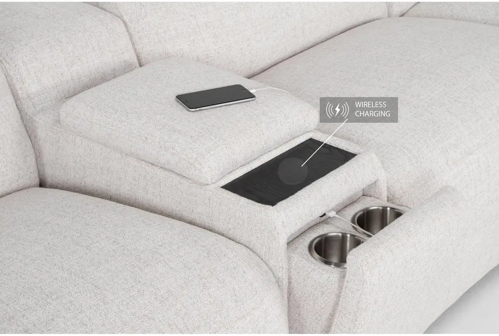 Experience the ultimate comfort and functionality with the Morro Bay II Beige 144" 6 Piece Power Reclining U-Shaped Modular Sectional. This right arm facing sectional features a soft Nathan wheat fabric that brings a modern touch to your living room. Designed for convenience, it includes a power headrest, wireless charging, storage, pop out cupholders, and USB ports.