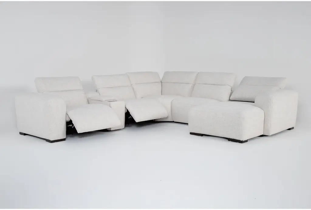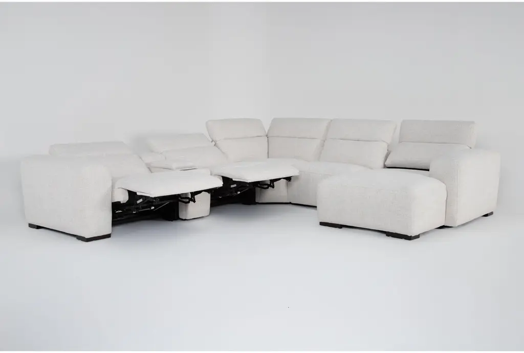 Morro Bay Ii Beige 144" 6 Piece Power Reclining U-Shaped Modular Sectional With Right Arm Facing Chaise Power Headrest Wireless Charging Storage Pop Out Cupholders & Usb