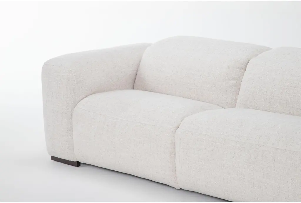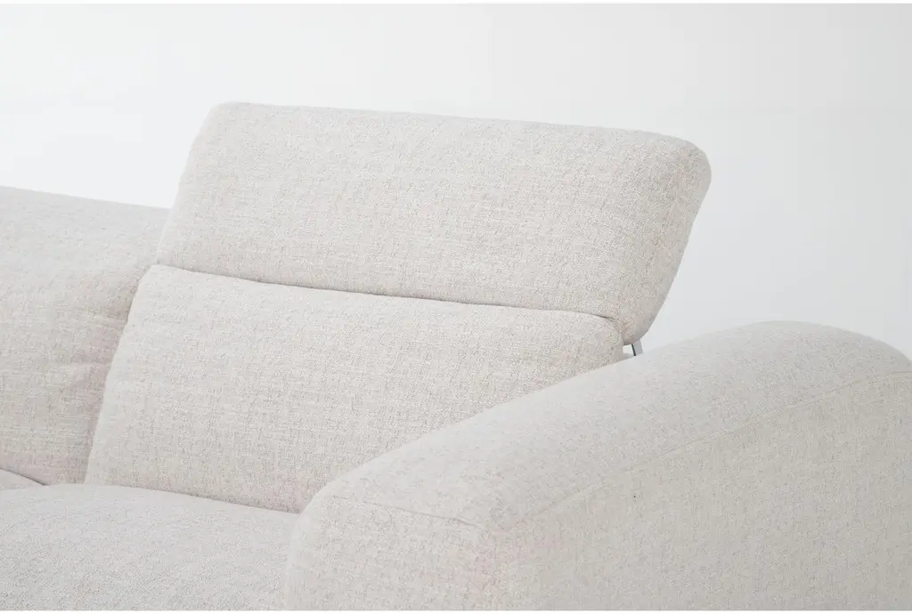 Experience the ultimate in comfort and style with the Morro Bay II Beige Fabric 128" 3 Piece Power Triple Reclining Modular Sofa. This modern sofa features a sleek design with track arms and adjustable headrests, making it a perfect addition to any living room. The Nathan wheat color and 100% polyester fabric provide a soft and inviting feel, while the power headrest and USB ports add convenience and functionality.