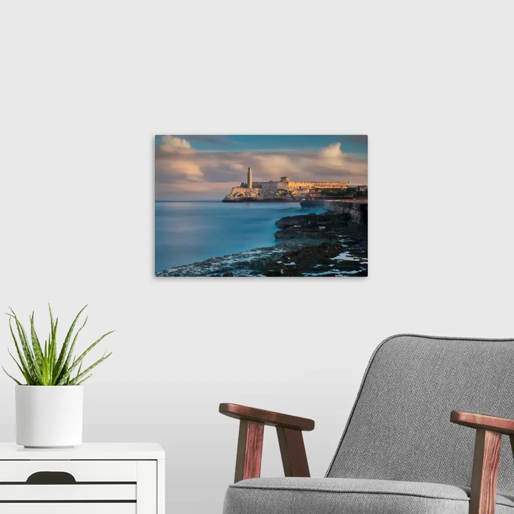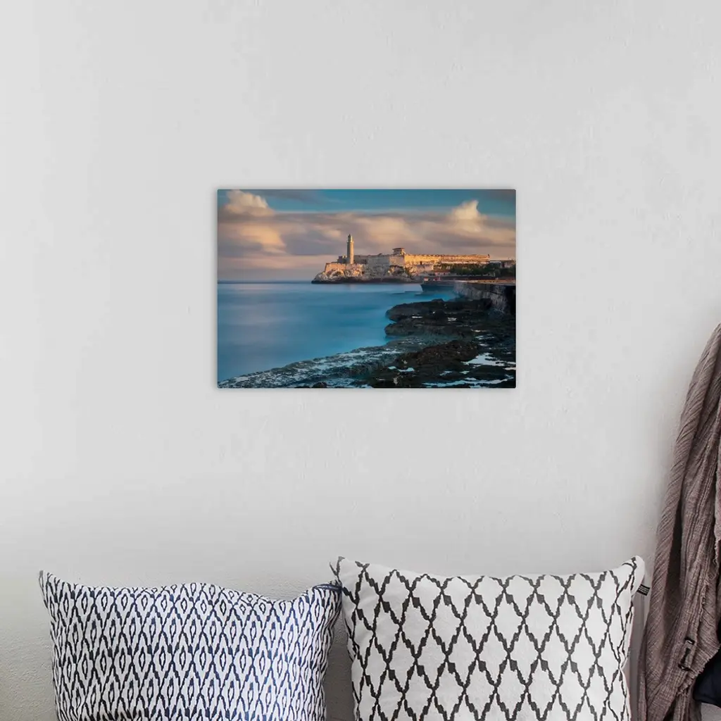 Castle on the rocky coast of the Atlantic Ocean in Cuba.