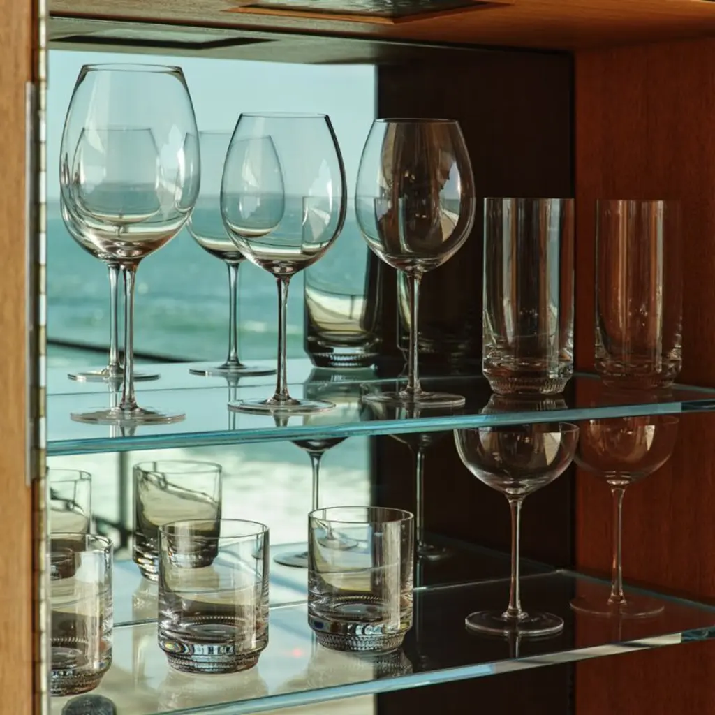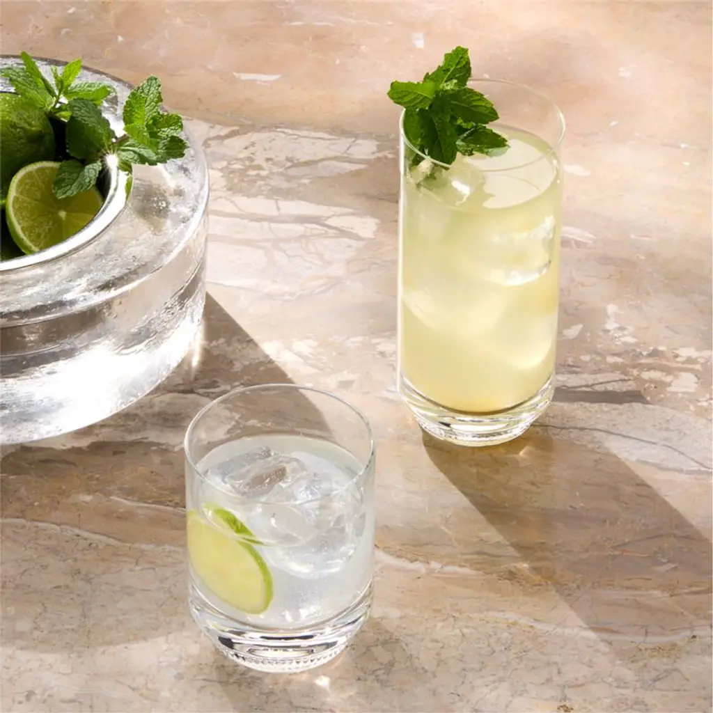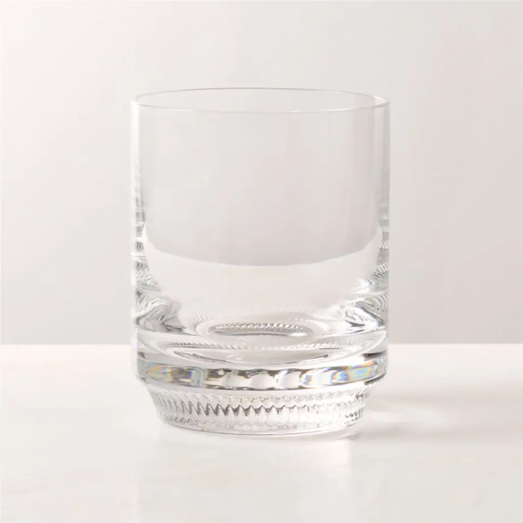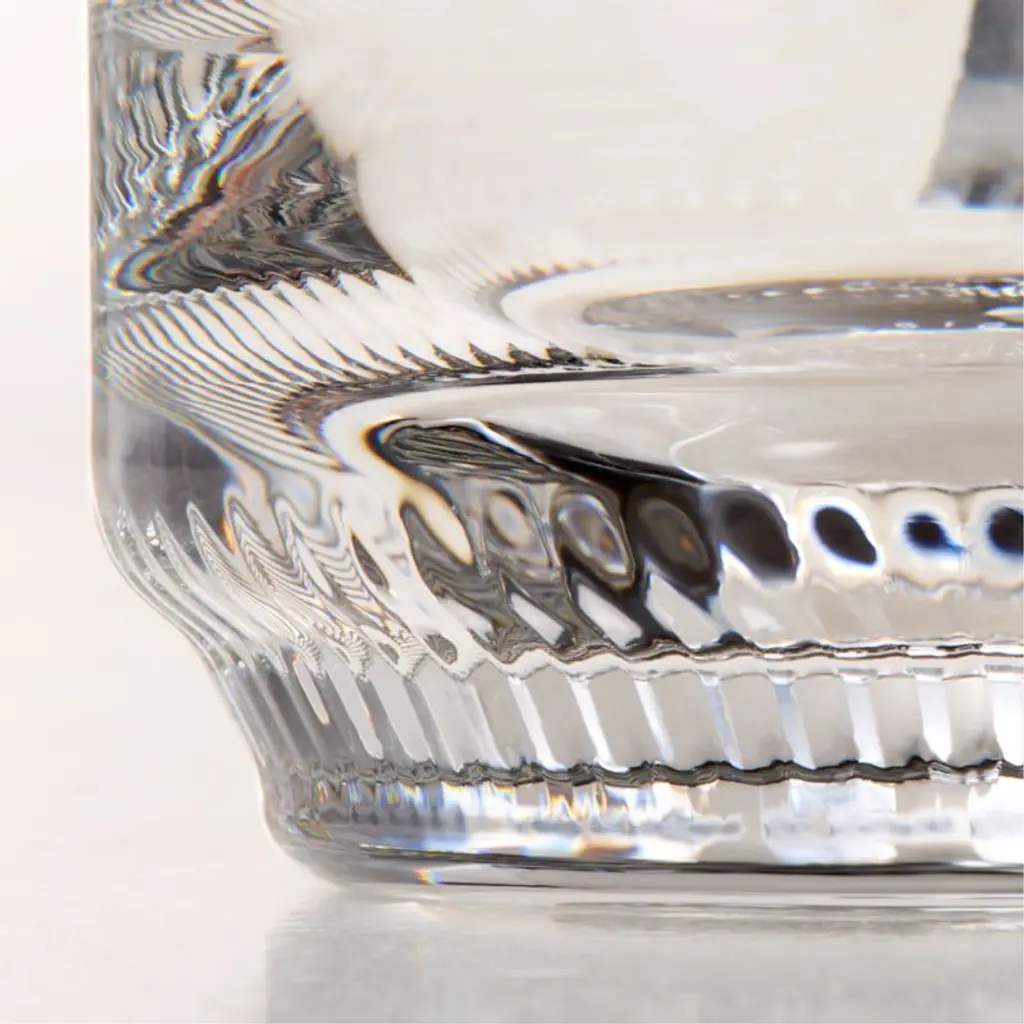 Inspired by International Style, crystalline double old-fashioned glass by Kravitz Design is distinguished by sleek lines and a fluted base. Crafted in southern Poland by Krosno, a world-renowned glassmaker that has been producing high-quality glassware for over 100 years. CB2 exclusive.