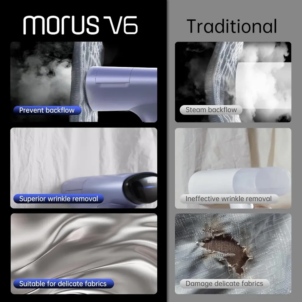 Experience the ultimate convenience with Morus V6 Travel Size Vacuum Steamer for Home, School, College Use! This 3.6lbs lightweight marvel combines portability (detachable water tank) with powerful features: 20-second quick heat-up for instant wrinkle removal, innovative Micro-Dry Cleaning Technology that steams and suctions to eliminate dust/odors, and adjustable steam for all fabrics—from silks to cottons. Its precision suction tackles collars, cuffs, and edges effortlessly, while hands-free collar care ensures safe, detailed handling. No backflow design guarantees smooth ironing, making it perfect for home, travel, or on-the-go touch-ups. Refresh and revitalize your wardrobe in minutes! Get yours today for wrinkle-free, fresh clothes anytime, anywhere!