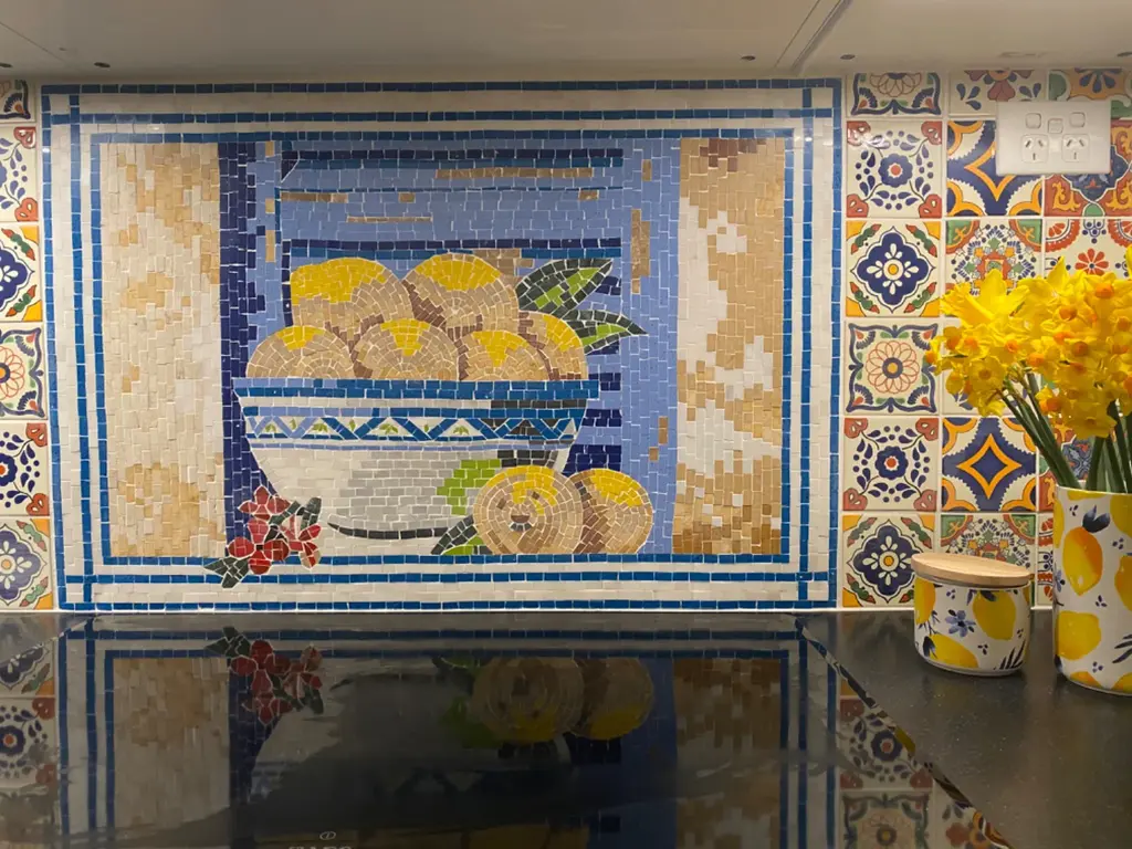 Introducing the Mosaic Accent - Amalfi Limoncello, a stunning piece of wall art that will elevate your living space with vibrant energy and charm. Inspired by the sunny coast of Amalfi, this exquisite mosaic features bright yellow lemons, bringing a refreshing burst of cheerfulness to your home. Whether you're looking to liven up your kitchen, brighten up your apartment, or simply add a delightful touch of Italian flair to your décor, this mosaic is the perfect choice.Each Mosaic Accent - Amalfi Limoncello is meticulously handcrafted with natural stones, ensuring that no two pieces are exactly alike. The craftsmanship involved guarantees a unique work of art that showcases the beauty and intricacies of the materials. The cheerful lemons set against a harmonious backdrop will create an inviting atmosphere and serve as a conversation starter among your guests.Available in both standard and custom sizes, the Mosaic Accent - Amalfi Limoncello can be tailored to fit your specific space and aesthetic preferences. Whether you want to make a bold statement in a large area or add a subtle hint of color to a smaller wall, this mosaic can be adjusted to meet your vision.Incorporating the Mosaic Accent - Amalfi Limoncello into your home décor is an effortless way to bring a slice of the Amalfi Coast into your everyday life. Its vibrant colors and handcrafted nature make it a perfect piece for anyone looking to infuse their home with warmth and personality. Brighten up your kitchen walls or create a delightful focal point in your living room with this elegant mosaic. Experience the joy of handcrafted art that celebrates the essence of Italian culture with the Mosaic Accent - Amalfi Limoncello.