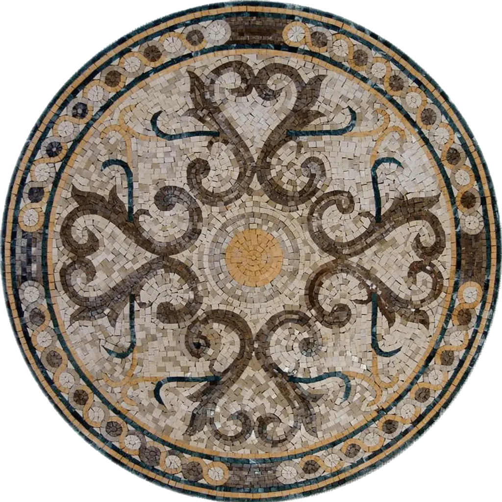 Introducing the Mosaic Art Medallion - Florence, a captivating piece that transcends time and brings the elegance of ancient craftsmanship into your space. Inspired by the exquisite Roman mosaic art found in historical courtyards, this medallion is a true treasure for enthusiasts of artistic decor.The Mosaic Art Medallion - Florence is beautifully wrapped in a harmonious palette of gray, black, white, and terracotta tones, creating a stunning visual impact that can enhance any room. The intricate design features a mesmerizing maze of guilloche, elegantly intertwined with blossoming tulips that dot the scene, offering a sense of depth and artistry that is sure to impress.This hand-cut mosaic rondure is not just a decorative piece; it’s a statement. Imagine transforming your tile floor with this striking medallion, adding both drama and dimension that elevates your interior design. Each piece is crafted with meticulous attention to detail, ensuring that your Mosaic Art Medallion - Florence is not just a decoration, but a work of art.Available in four standard sizes, the Mosaic Art Medallion - Florence can also be custom-made to suit your specific project needs. Whether you're a DIY enthusiast looking to make a bold statement in your home or a designer crafting a luxurious space, this medallion offers versatility and beauty that adapts to your vision.Add the Mosaic Art Medallion - Florence to your collection today and experience the perfect blend of history, artistry, and elegance. Transform your space with this exquisite medallion and let it become the focal point of your design, embodying timeless beauty for generations to come.