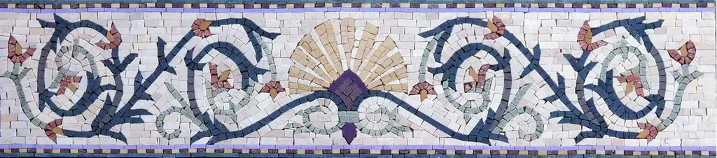 Introducing our stunning Mosaic Border - Crown Design, a captivating piece that merges art and functionality to elevate your living space. This exquisite mosaic showcases an intricate design inspired by the elegance of ancient Egyptian crowns, meticulously handcrafted to infuse a timeless and sophisticated touch into your surroundings. Each mosaic is entirely handmade by skilled artisans who pour passion and expertise into every detail, ensuring a premium quality masterpiece. Crafted from high-quality marble stones, this mosaic border not only mesmerizes with its visual appeal but also guarantees durability, making it ideal for both indoor and outdoor settings. The neutral tones woven throughout the design offer versatile harmony, effortlessly complementing a wide range of décor styles, from contemporary to classic. Adding to its luxurious allure, the mosaic incorporates luminous Light Purple Quartz and radiant Dark Purple Quartz stones, whose crystalline, jewel-like shimmer casts a prismatic glow that enchants the eye. These scintillating quartz hues bring depth and a regal richness, evoking the majestic splendor of ancient royalty. Whether framing a doorway, outlining a patio, or enhancing a garden path, this mosaic border serves as a premium accent that transforms any space into a refined sanctuary. Embrace the allure of ancient history combined with the beauty of handcrafted artistry through our Mosaic Border - Crown Design. More than just decoration, it is a statement piece inviting admiration and conversation. Indulge in the elegance of this luxury stone mosaic today and let it be a lasting, exotic addition to your living environment.