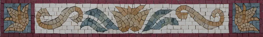 Introducing our exquisite "Mosaic Border - Triple Circles," a stunning piece that effortlessly combines artistry and function. This remarkable mosaic border features a captivating design of three intricately crafted circles set against a serene blue background, creating a visual harmony that is perfect for any space. Each piece is meticulously handmade from premium marble stones, ensuring that no two mosaics are exactly alike. This dedication to craftsmanship not only showcases the beauty of natural materials but also guarantees exceptional durability. The vibrant colors and detailed patterns in this mosaic border add a touch of elegance and sophistication to both interior and exterior settings, making it a versatile choice for a variety of design projects.Whether you're looking to enhance your outdoor patio, create a stunning feature wall in your living room, or adorn your garden pathways, the "Mosaic Border - Triple Circles" is the perfect solution. Its timeless design effortlessly complements a wide range of styles, from contemporary to classic, allowing your creativity to shine through in your home decor.Transform your space into a work of art with this extraordinary handmade mosaic. Ideal for both residential and commercial use, this border not only serves as a decorative element but also as a functional piece that brings life and vibrancy to your surroundings. Upgrade your design game with the "Mosaic Border - Triple Circles," and experience the magic of handcrafted artistry in every detail. Embrace the beauty and uniqueness of mosaic art today!