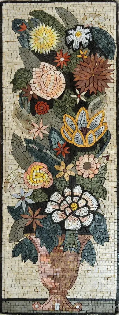 Introducing "Mosaic Designs - Aloe Vera," a stunning floral mosaic that transforms the walls of your living spaces into a work of art. Crafted from all hand-cut natural stones, this exquisite design exemplifies the harmonious blend of tradition and artistry, offering a unique touch to your home decor. The intricate Aloe Vera motif not only enhances the aesthetic appeal of your interiors but also evokes a sense of tranquility and nature, making it a perfect choice for any room, be it the living room, bedroom, or even a cozy reading nook.Each piece of the "Mosaic Designs - Aloe Vera" is meticulously crafted by skilled artisans, ensuring that every detail is perfected to bring the beauty of Aloe Vera to life. The natural stones used in this mosaic are not only durable but also add a rich texture that elevates your space. The vibrant colors and stunning patterns create an inviting environment while celebrating the timeless beauty of hand-crafted artistry.Installing the "Mosaic Designs - Aloe Vera" in your home is an easy way to infuse your decor with character and style. Whether you prefer a contemporary look or a more traditional setting, this floral design fits seamlessly into any theme, enhancing the overall ambiance. Bring the outdoors in and enjoy the refreshing allure of nature with this exquisite mosaic that serves as a conversation starter and a focal point in your home.Choose "Mosaic Designs - Aloe Vera" for your next home improvement project and redefine your living spaces with a touch of elegance and natural beauty. With this mosaic, you’re not just adding decor; you’re investing in a piece of art that tells a story and enriches your home for years to come. Experience the magic of bespoke design and let the Aloe Vera mosaic inspire your creativity and interior vision.