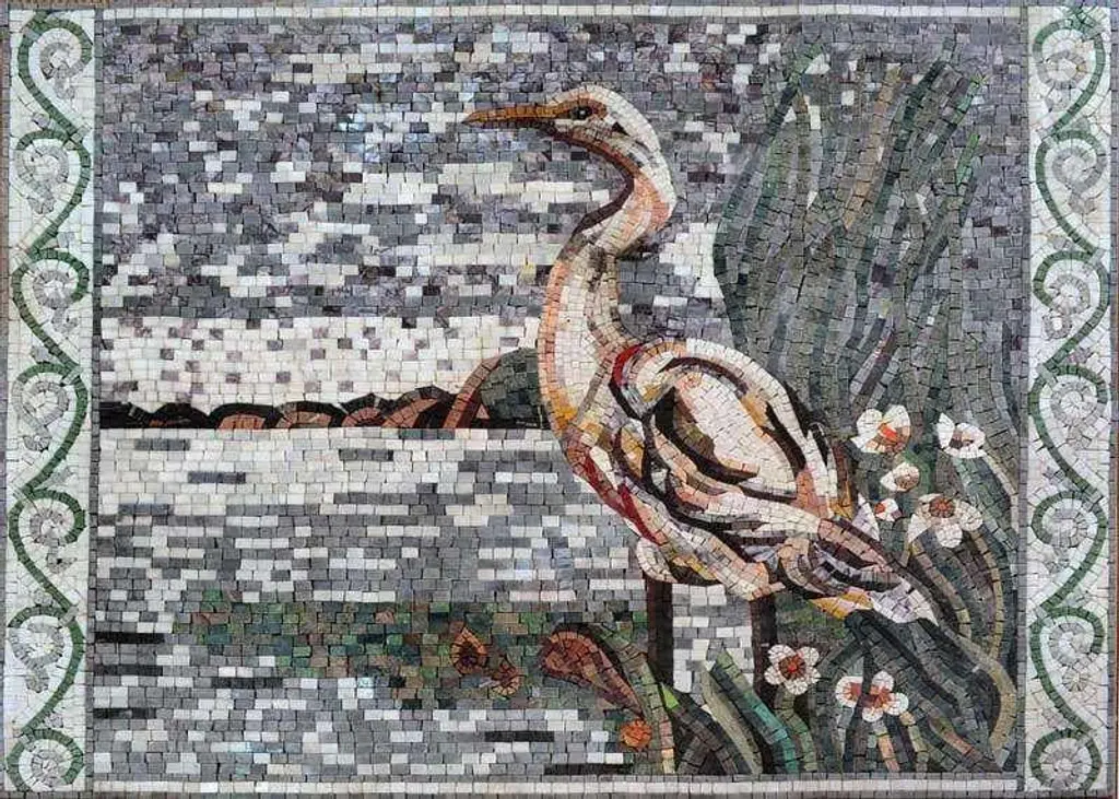 Introducing our exquisite "Mosaic Designs - Dalmatian Pelicans," a stunning addition to your home decor that beautifully encapsulates the elegance of nature. This handcrafted mosaic celebrates the grace of the Dalmatian pelican, a magnificent bird known for its striking appearance and unique character. As part of our Birds and Butterflies mosaic collection, this piece is not just art; it’s a conversation starter that brings the beauty of the natural world into your living space.Crafted with care from high-quality, natural stone, each mosaic tile is meticulously placed to create a vibrant and detailed portrayal of the Dalmatian pelican. The intricate design allows for versatility in usage, making it perfect for a variety of settings. Whether you envision it as a stunning backsplash in your bathroom, setting a tranquil mood while you refresh, or as a standout piece of outdoor tile art that transforms your patio into a serene escape, the Dalmatian pelicans mosaic is sure to impress.This piece is not only stylish but also highly durable, making it suitable for both indoor and outdoor use. It resists the elements, ensuring that it remains a beautiful focal point for years to come. Imagine the ambiance it will create in your garden or on your balcony, bringing a hint of wildlife elegance to your outdoor gatherings. The "Mosaic Designs - Dalmatian Pelicans" mosaic is more than just decoration; it’s a tribute to the artistry of nature and craftsmanship. Each mosaic is handmade, ensuring that you receive a one-of-a-kind piece that reflects the beauty and individuality of its inspiration. Elevate your home decor with this unique blend of artistry and nature, and let the Dalmatian pelican add a touch of charm and sophistication to your space.