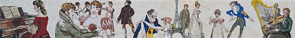 Transform your space into a vibrant masterpiece with our "Mosaic Designs - French Opera" mosaic tile. This stunning piece beautifully embodies the essence of French artistry, blending intricate patterns and a rich color palette to create a captivating focal point for any indoor or outdoor environment. The design features a harmonious interplay of deep blues, lush greens, and striking golds, reminiscent of the enchanting opera houses of France. Whether you're looking to elevate your kitchen with a unique backsplash, adding character to a bathroom, or creating an eye-catching feature in your garden or pool area, this mosaic is the perfect choice. Its geometric shapes and luxurious hues add depth and dimension, transforming ordinary surfaces into spectacular works of art. Crafted with meticulous attention to detail, our mosaic tiles are made from high-quality materials that ensure durability and longevity. Each piece is designed to withstand the elements, making it ideal for both indoor use and outdoor projects. The versatility of the "French Opera" design allows it to complement various decor styles, from classic to modern, ensuring it fits seamlessly into any aesthetic.Available in custom sizes, we cater to your specific project needs, giving you the flexibility to create a personalized look that reflects your unique style. Browse our extensive mosaics gallery today to find your perfect pattern and embark on a journey of creativity and beauty in your home or garden. Let the "Mosaic Designs - French Opera" inspire you to make a bold statement with color and craftsmanship.
