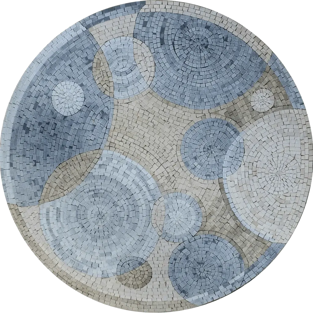 Enhance your living space with the stunning Mosaic Medallion - Pairs of Circles, a striking blend of minimalism and elegance designed to elevate your flooring. This exquisite artwork showcases an intricate design of overlapping bubbles in a soothing palette of ivory and gray, perfectly melding sophistication with simplicity. The Mosaic Medallion - Pairs of Circles is not just a decorative element; it’s a statement piece that transforms any area into a work of art. Whether you are looking to revamp your entryway, bathroom, or kitchen, this medallion seamlessly fits into a variety of settings, making it an ideal choice for both contemporary and classic interiors. Crafted with attention to detail, this mosaic medallion is available in both standard and custom sizes, allowing you to find the perfect fit for your unique space. The neutral color scheme provides versatility, ensuring that it harmonizes beautifully with your existing decor while adding a fresh and eye-catching focal point.Installation is straightforward, making it easy to breathe new life into your floors without a major renovation. The durable design ensures that your Mosaic Medallion - Pairs of Circles will stand the test of time, maintaining its beauty and integrity even in high-traffic areas.Immerse your home in the understated luxury and contemporary flair of the Mosaic Medallion - Pairs of Circles. Perfect for enthusiasts of minimalist aesthetics, this stunning floor art is sure to become a beloved feature of your decor. Transform your environment today with this beautiful blend of style and functionality.