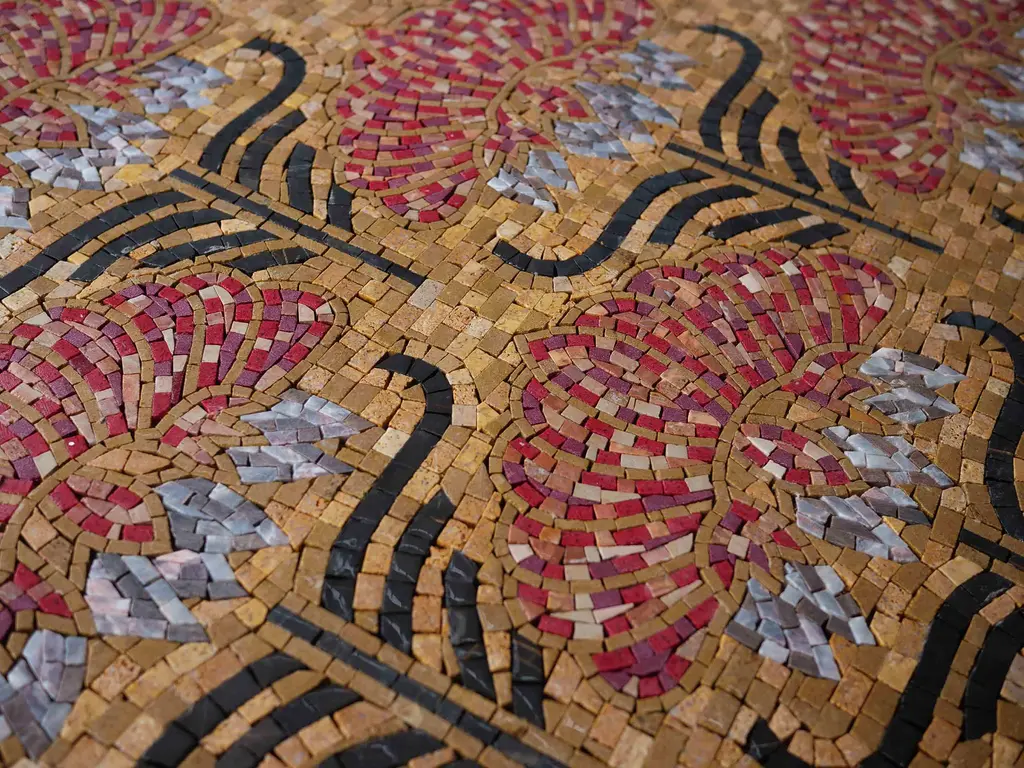 Introducing our exquisite "Mosaic Pattern - Crown Flowers," a stunning piece that brings artistry and elegance to any space. This unique mosaic pattern features beautifully crafted crowned flowers set against a vibrant red background, creating a captivating visual impact that draws the eye and sparks conversation.Meticulously handmade from high-quality marble stones, each piece is carefully selected to enhance the overall design, ensuring durability and longevity. The intricate detailing of the crowned flowers showcases the skilled craftsmanship that goes into every mosaic, allowing you to appreciate the artistry even from close range. Whether you're looking to elevate your interior decor or add a touch of sophistication to your exterior settings, this mosaic pattern is the perfect choice. It fits seamlessly into a variety of design styles, from modern to traditional, making it a versatile addition to your home or outdoor space.Transform your environment with the timeless beauty of our "Mosaic Pattern - Crown Flowers." This remarkable piece is more than just decor; it’s a statement of artistry that celebrates color, texture, and intricate design. Experience the charm of handcrafted artistry and let it inspire your living space today.