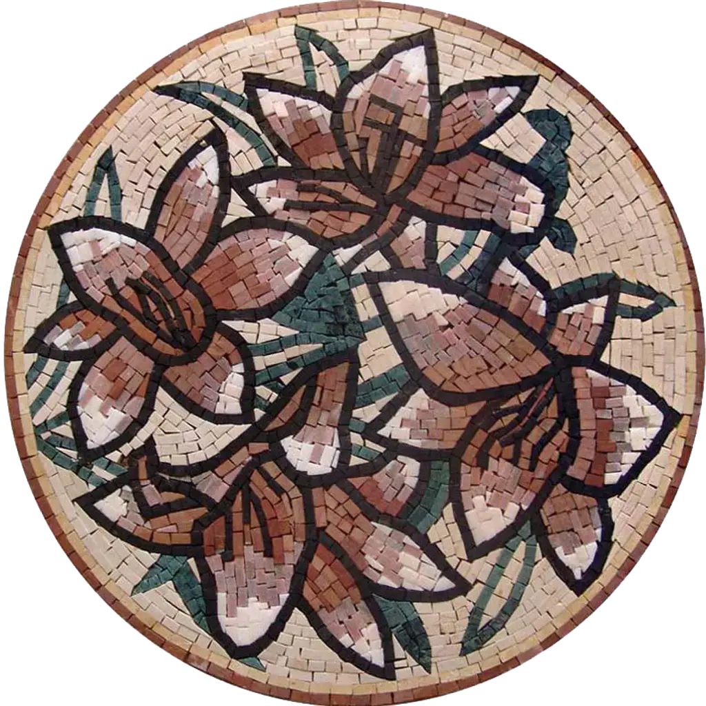 Mosaic Tile Art - Soft Flower Medallion - 90cm X 90cm (36" X 36")