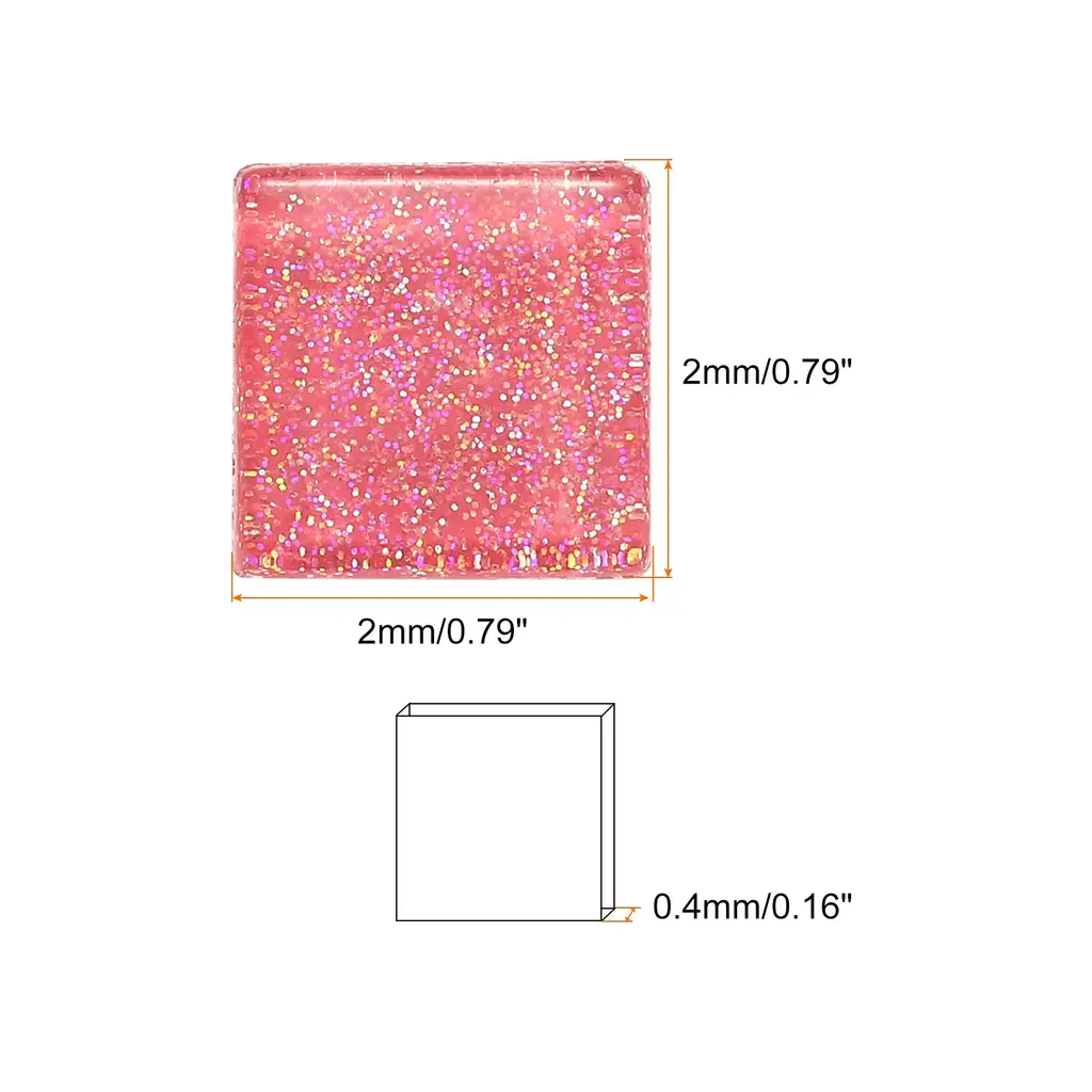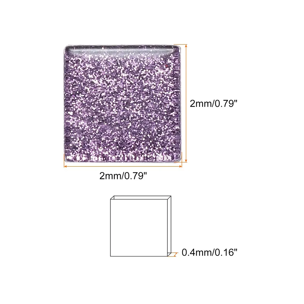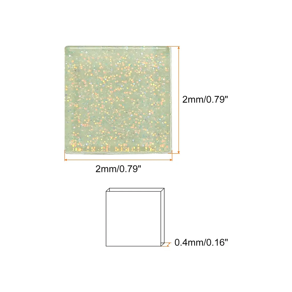 What is this?Sparkling Space Transformation:Create personalized home decor or unique crafts with glitter glass mosaic tiles. With a wide range of colors and sizes, these mosaic tiles are perfect for DIY projects that reflect your personal style.What will I get?Color: WhiteMaterial: GlassFinish Type: PolishedInstallation Type: Glue Down(Not Included Here!)Square Mosaic Size : 2 x 2 x 0.4 cm/0.79 x 0.79 x 0.16inch(L*W*T)In the package of: Approximately 25pcs(100g) Mosaics TilesAre there any advantages of the product?Durable and easy to clean:Mosaic tiles for craft are versatile and elegant, adding beauty to any DIY project. Their smooth surface makes them easy to clean and maintain, while their resistance to fading and moisture-proof makes them cost-effective and durable.How to use it?Prepare the surface by ensuring it's clean, dry, and flat. Apply suitable adhesive and press the mosaic tiles firmly in place. Leave the adhesive to dry for 24 hours before grouting the mosaic tiles. Finally, clean off any excess grout with a damp sponge.What should I notice?Wear protective gloves when handling mosaic tiles to prevent hurt from sharp edges. Avoid exposing the mosaic tiles to extreme temperatures, direct sunlight, or harsh chemicals. Follow the manufacturer's instructions carefully for optimal results.