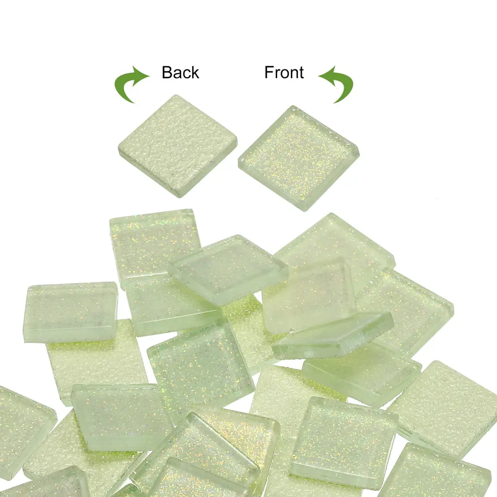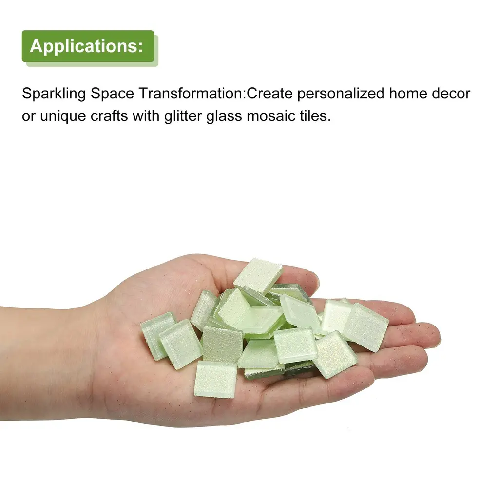 What is this?Sparkling Space Transformation:Create personalized home decor or unique crafts with glitter glass mosaic tiles. With a wide range of colors and sizes, these mosaic tiles are perfect for DIY projects that reflect your personal style.Are there any advantages of the product?Mosaic tiles for craft are versatile and elegant, adding beauty to any DIY project. Their smooth surface makes them easy to clean and maintain, while their resistance to fading and moisture-proof makes them cost-effective and durable.How to use it?Prepare the surface by ensuring it's clean, dry, and flat. Apply suitable adhesive and press the mosaic tiles firmly in place. Leave the adhesive to dry for 24 hours before grouting the mosaic tiles. Finally, clean off any excess grout with a damp sponge.What should I notice?Wear protective gloves when handling mosaic tiles to prevent hurt from edges. Avoid exposing the mosaic tiles to extreme temperatures, direct sunlight, or harsh chemicals. Follow the manufacturer's instructions carefully for optimal results.