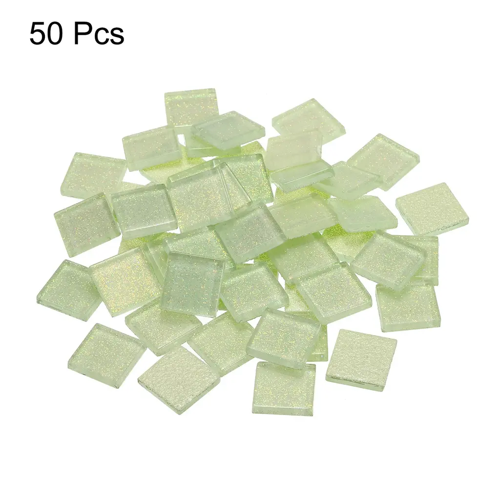 Mosaic Tiles, Glass Tiles 2 X 2Cm For Diy Crafts, 50pcs 200g - Fluorescent Yellow