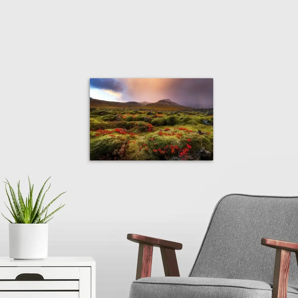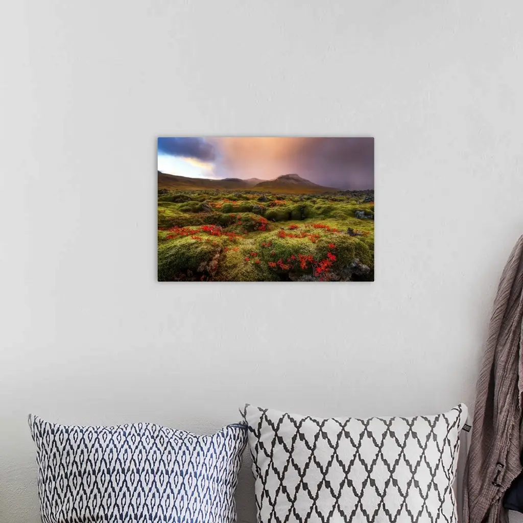 Moss Covered Lava Field At Sunrise, Snaefellsness Peninsula; Iceland