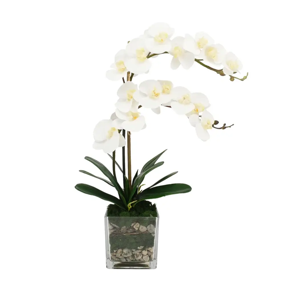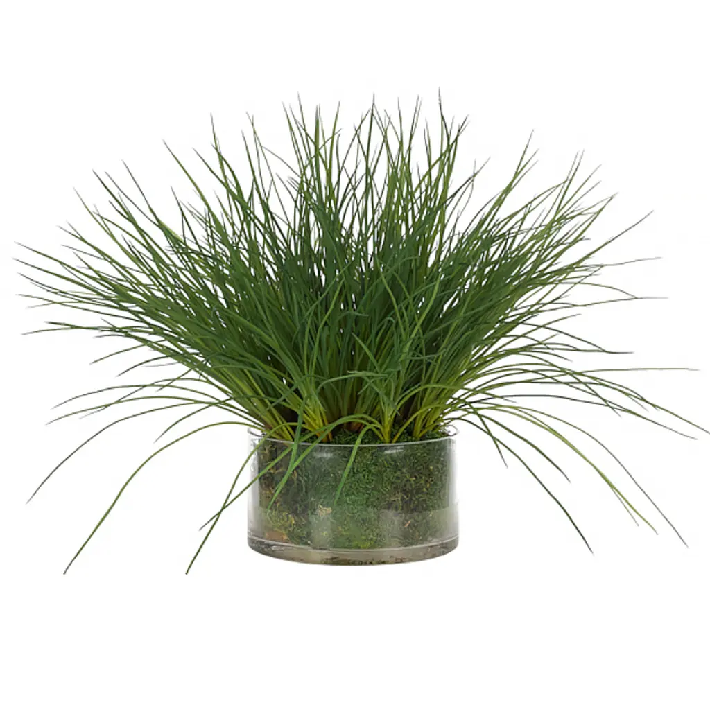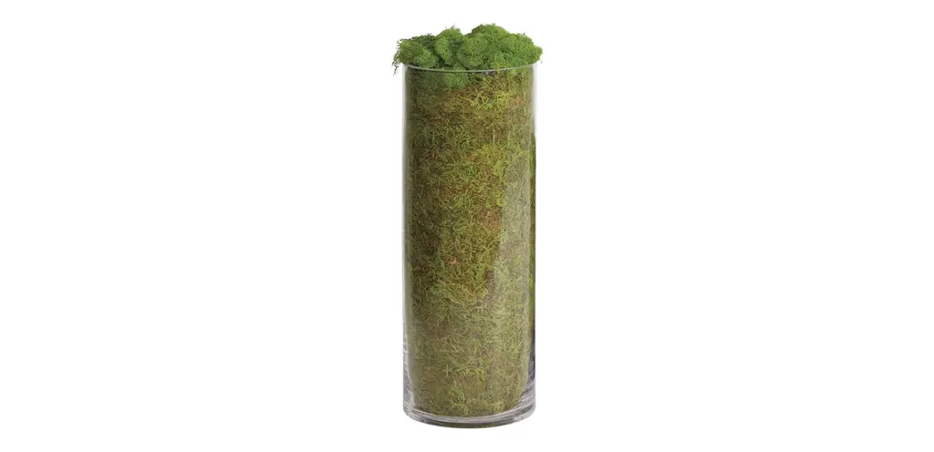 5"H X 24"W X 4"D A plate glass planter filled with preserved, lush, green mood moss.