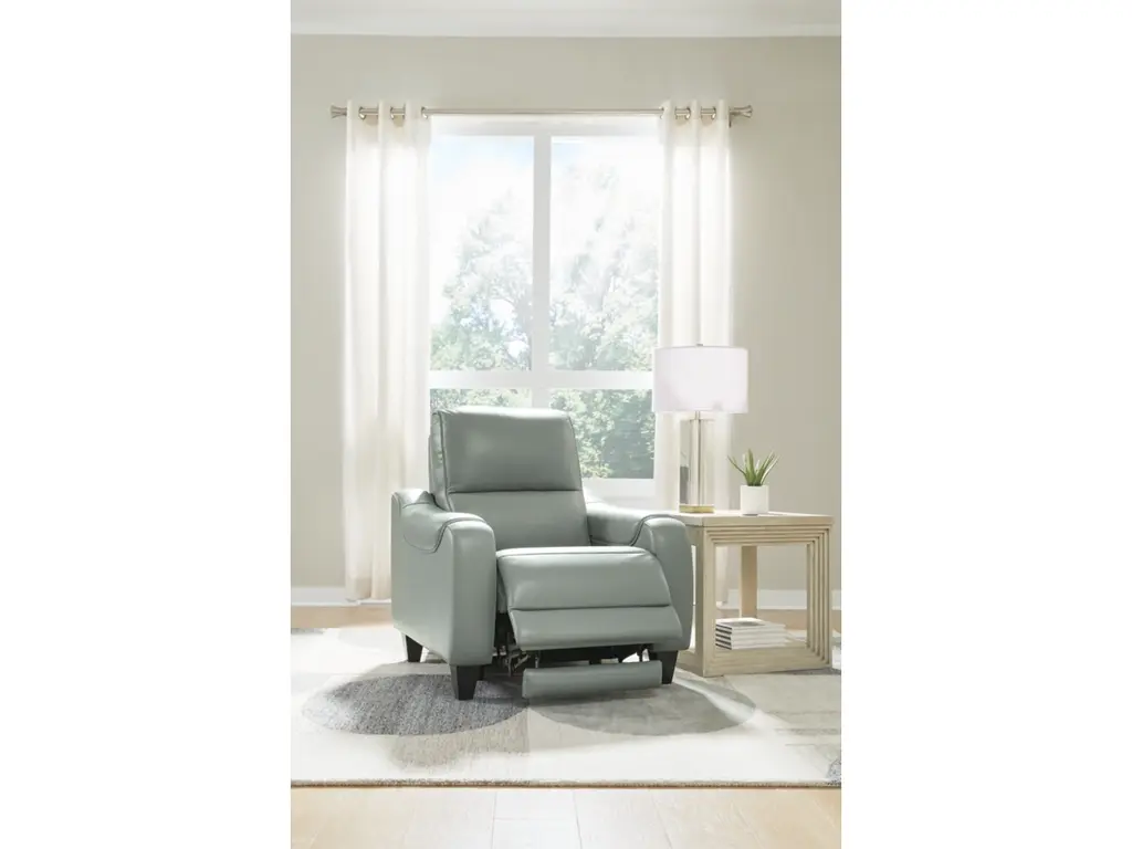 The fresh and modern Mosswell power recliner adapts to current trends without compromising core features. Designed with rich upholstery, dramatic stitching and high legs, its streamlined good looks speak volumes. Chill out while you power up thanks to built-in USB charging.