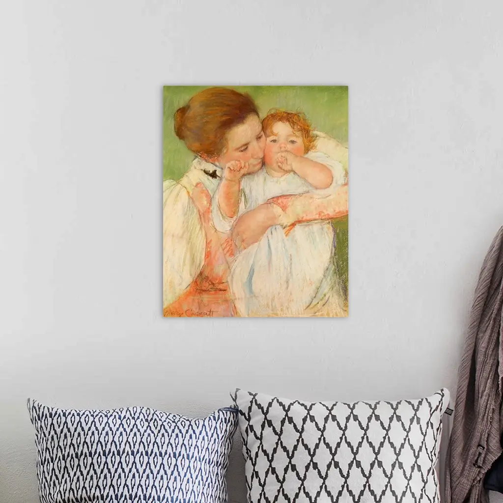 XIR124199 Mother and Child, 1897 (pastel on paper) by Cassatt, Mary Stevenson (1844-1926); 53x45 cm; Musee d'Orsay, Paris, France; (add. info.: Mere et enfant sur fond vert); Giraudon; American, out of copyright