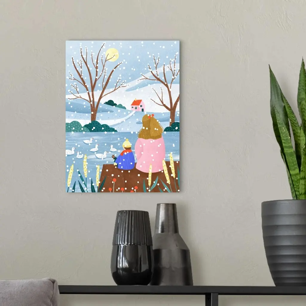 Mother And Child At Winter Lake wall art for home and office decor. Discover canvas art prints, photos, mural, big canvas art and framed wall art in GreatBigCanvas.com's varied collections.