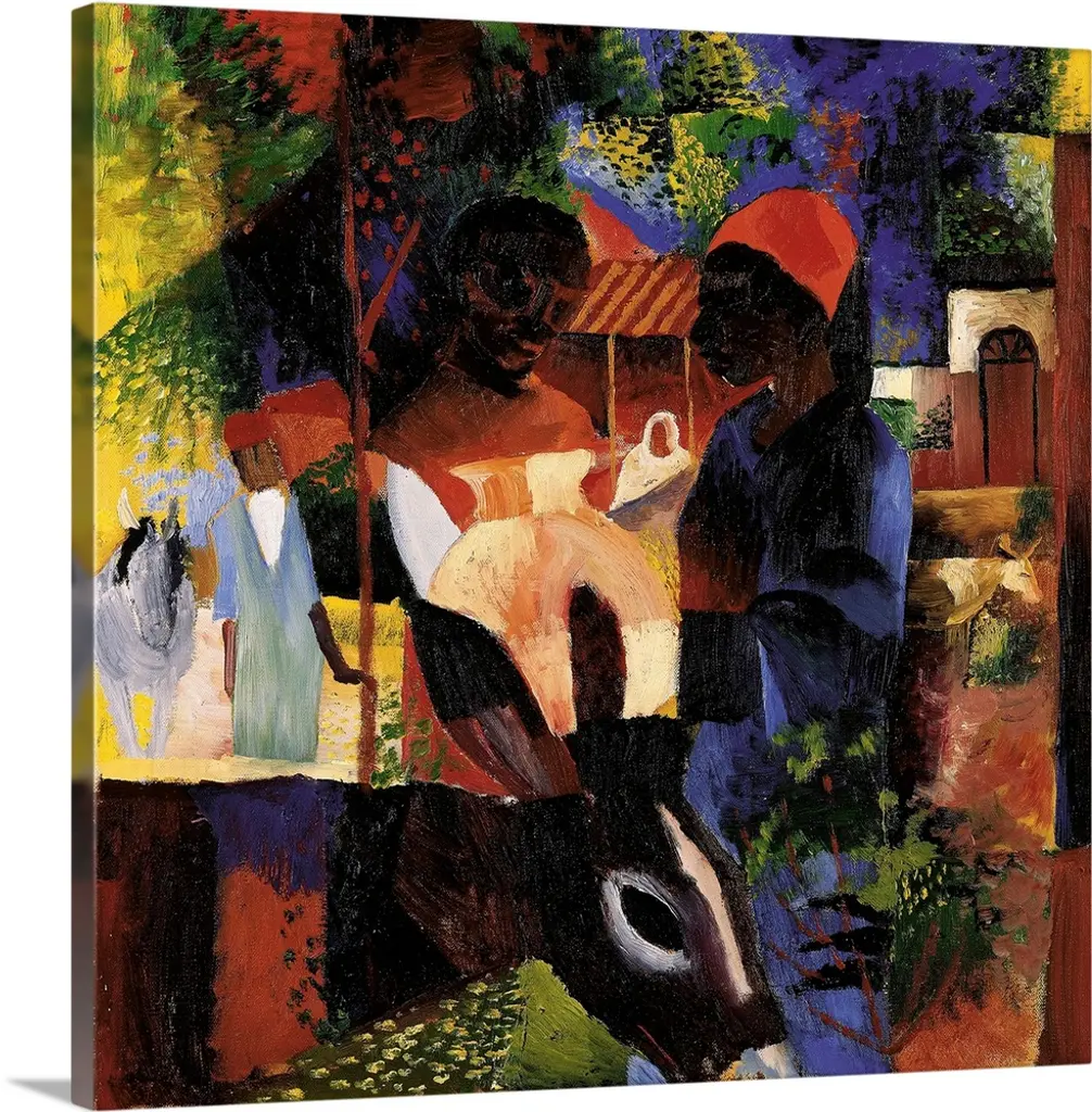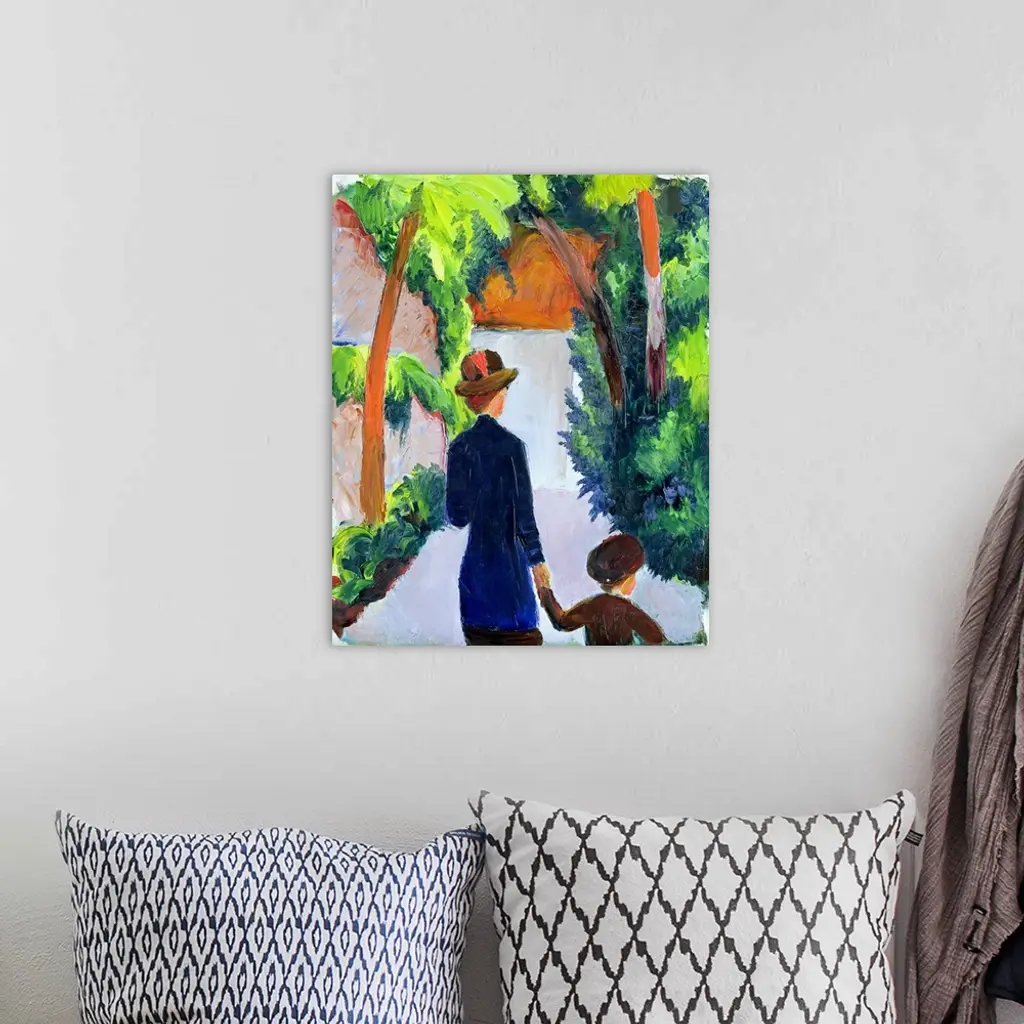 XKH141452 Mother and Child in the Park, 1914 (oil on canvas) by Macke, August (1887-1914); 56.3x46 cm; Hamburger Kunsthalle, Hamburg, Germany; German, out of copyright