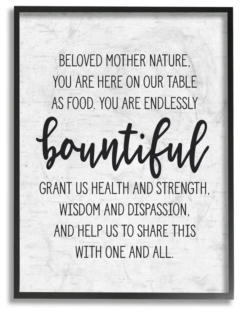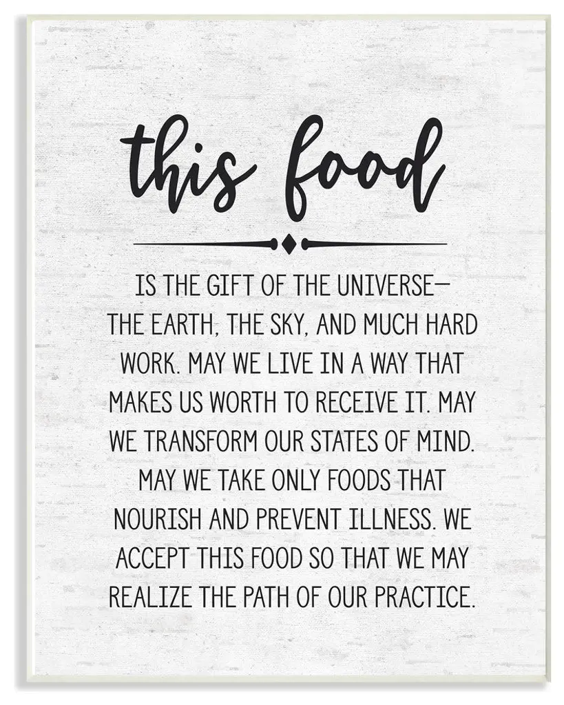 The Stupell Home Decor Collection Mother Nature Bountiful Food Subtle Birch Typography Wall Plaque Art, 10 x 0.5 x 15, Proudly Made in USAProudly made in the USA, all of our wall plaques start off as high quality lithograph prints that are then mounted on durable MDF wood. Each piece is hand finished and comes with a fresh layer of foil on the sides to give it a crisp clean look. It arrives ready to hang with no installation required, and comes with sturdy clear corners to keep it from damaging in transit.