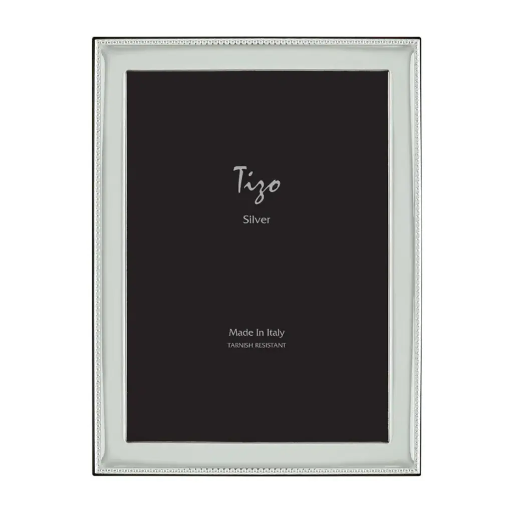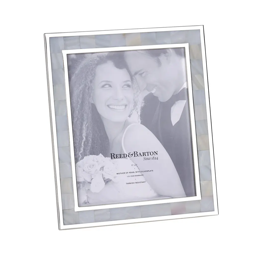A wide border of naturally luminescent white mother or pearl is accented with gleaming silverplate in this frame collection from Reed & Barton.