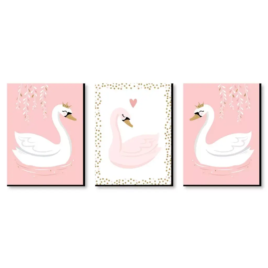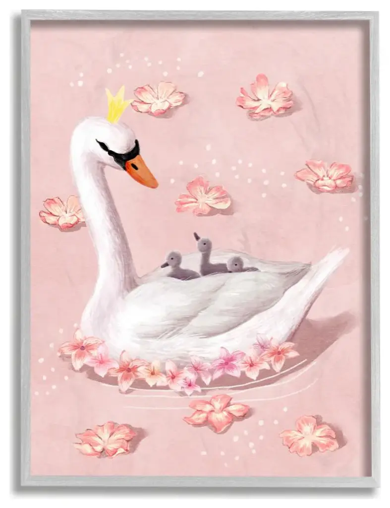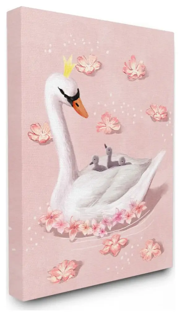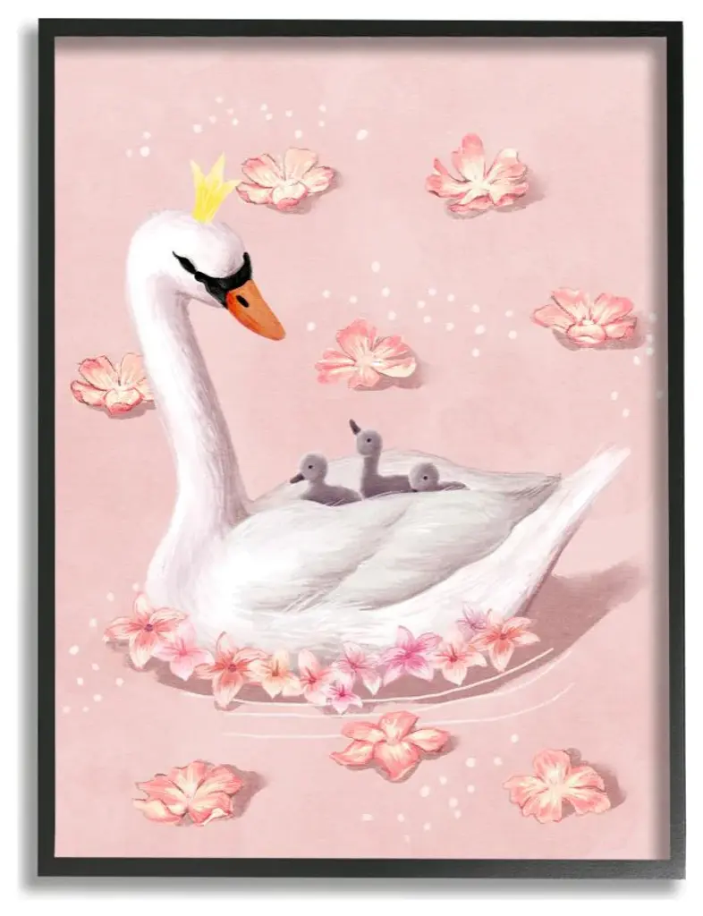 Mother Swan Queen And Chicks Lake Flowers Pink,1pc, Each 16 X 20