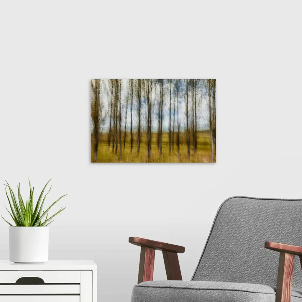 Motion Blur Of Beautiful Grove Of Deciduous Trees