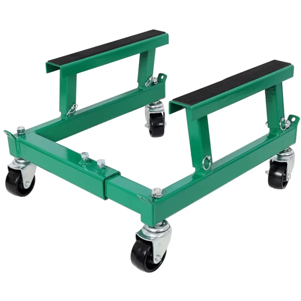 PRODUCT NAME: ATV Motorcycle Engine Cradle Dolly 1500lbs Main Material:Steel Product Dimensions Assembled Length (in.):18.00 Assembled Width (in.):20.00 Assembled Height (in.):12.00 Weight (lbs.):28.00