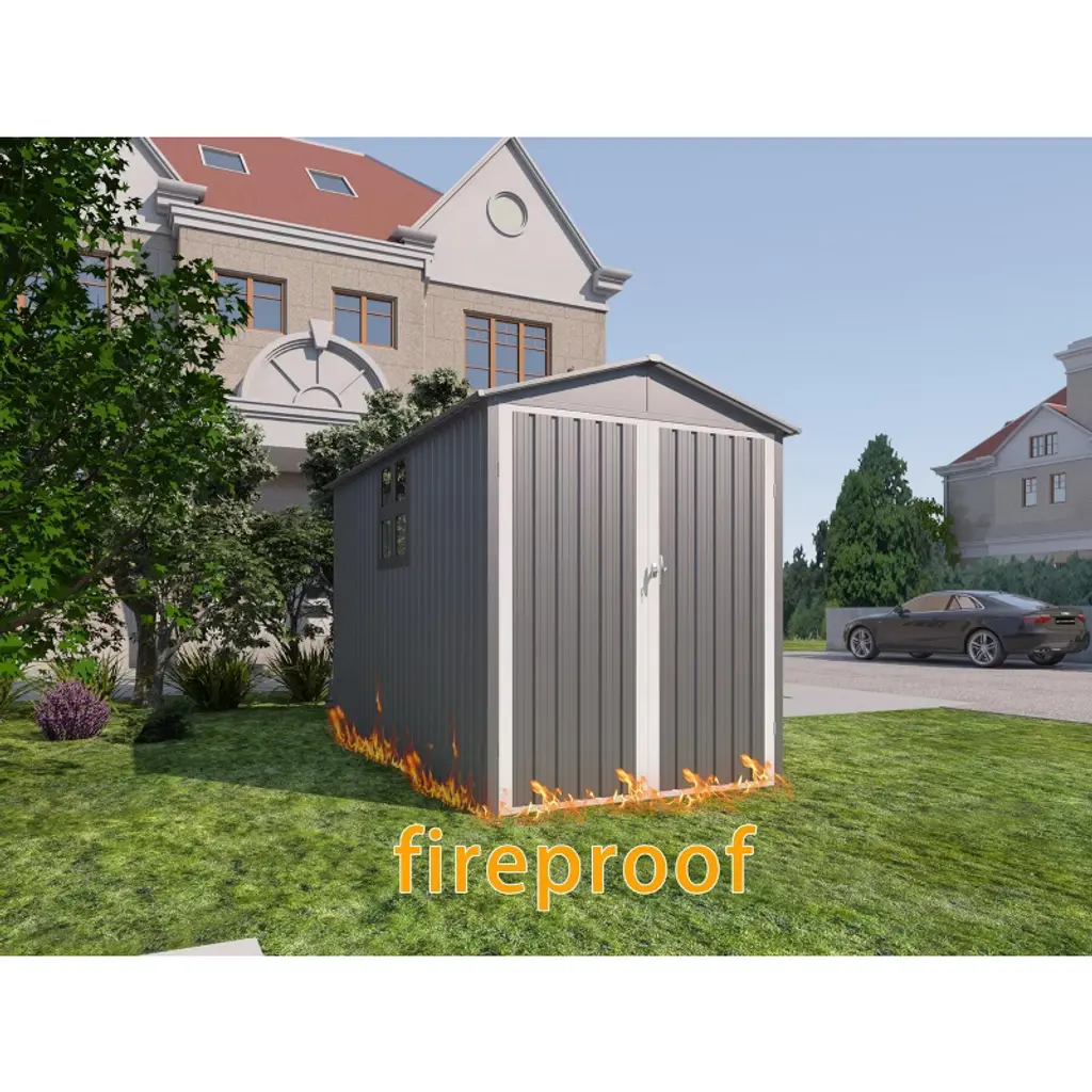 Motorcycle Outdoor Storage Shed With Window ,Without Tracks And Fixtures ,Grey+white
