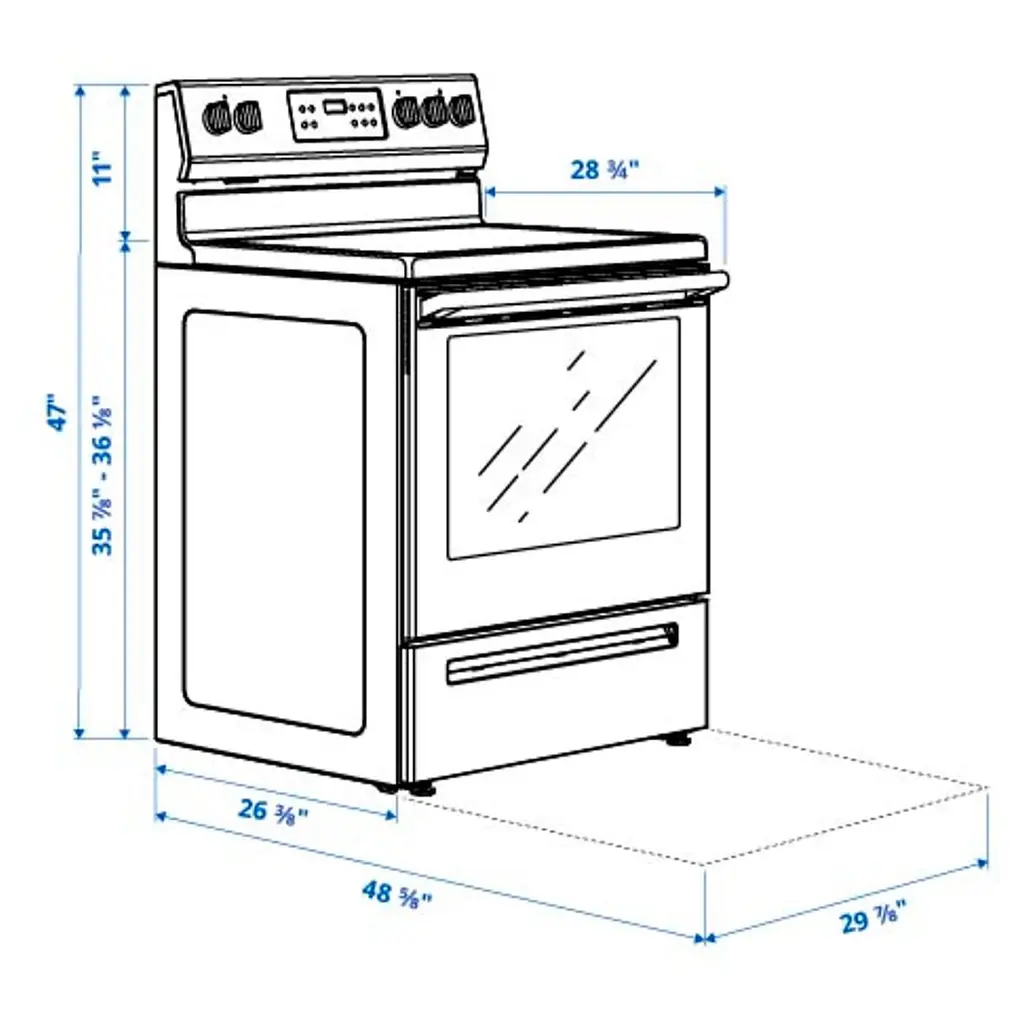 MOTSVARIG Range with glass ceramic cooktop - black Stainless steel. 5 year limited warranty. Read about the terms in the limited warranty brochure. One of the elements is expandable to accommodate various sizes of cookware. The quick boil zone gets meal on the table faster. Capacity: 5.3 cu.ft.