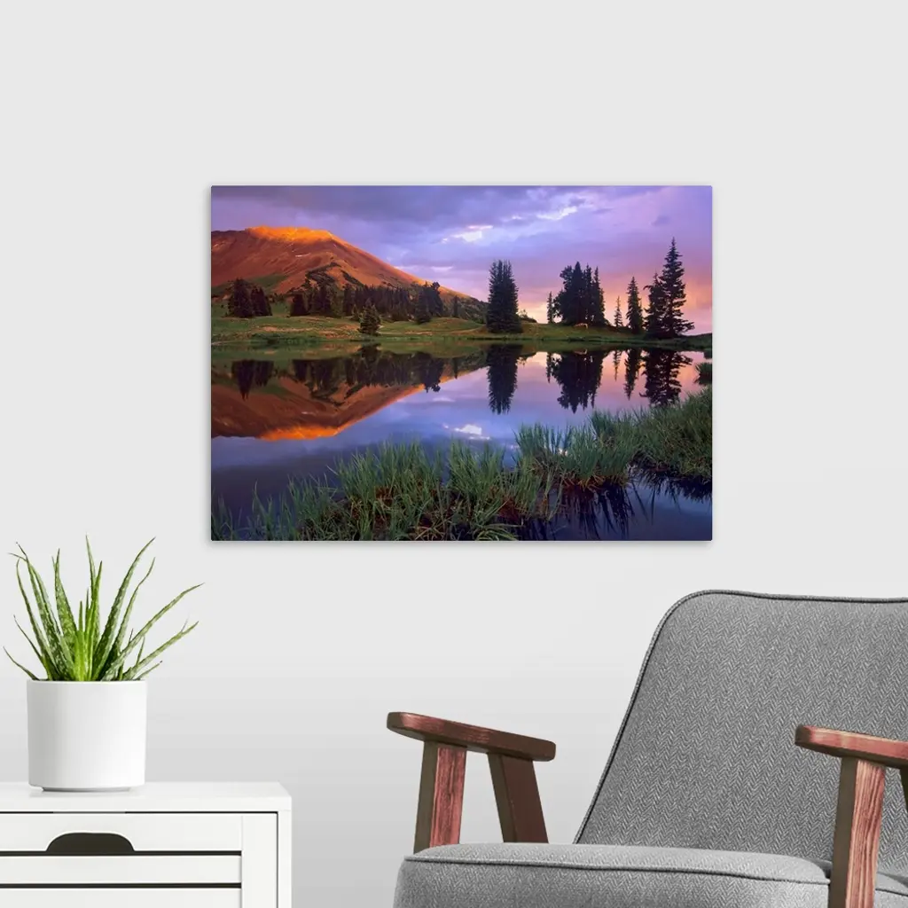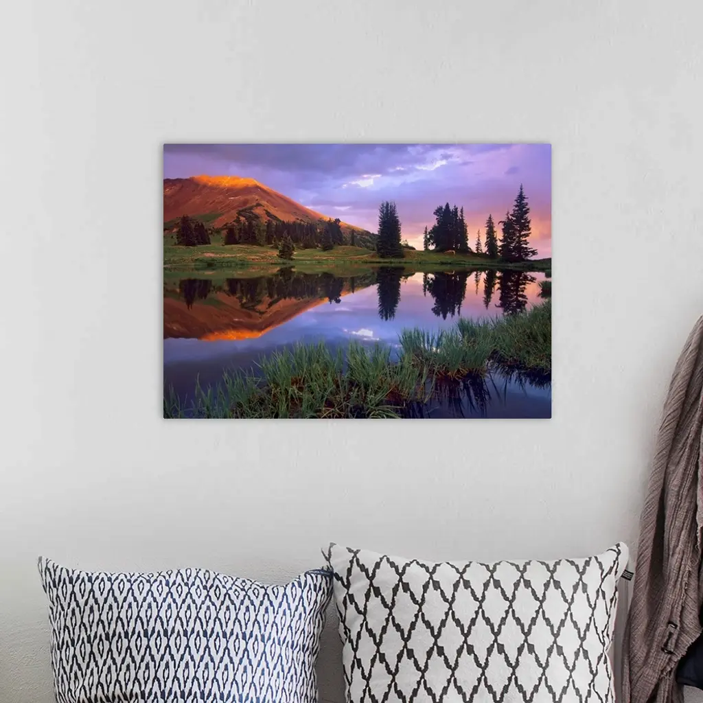 Mount Baldy at sunset reflected in lake along Paradise Divide, Colorado wall art for home and office decor. Discover canvas art prints, photos, mural, big canvas art and framed wall art in GreatBigCanvas.com's varied collections.