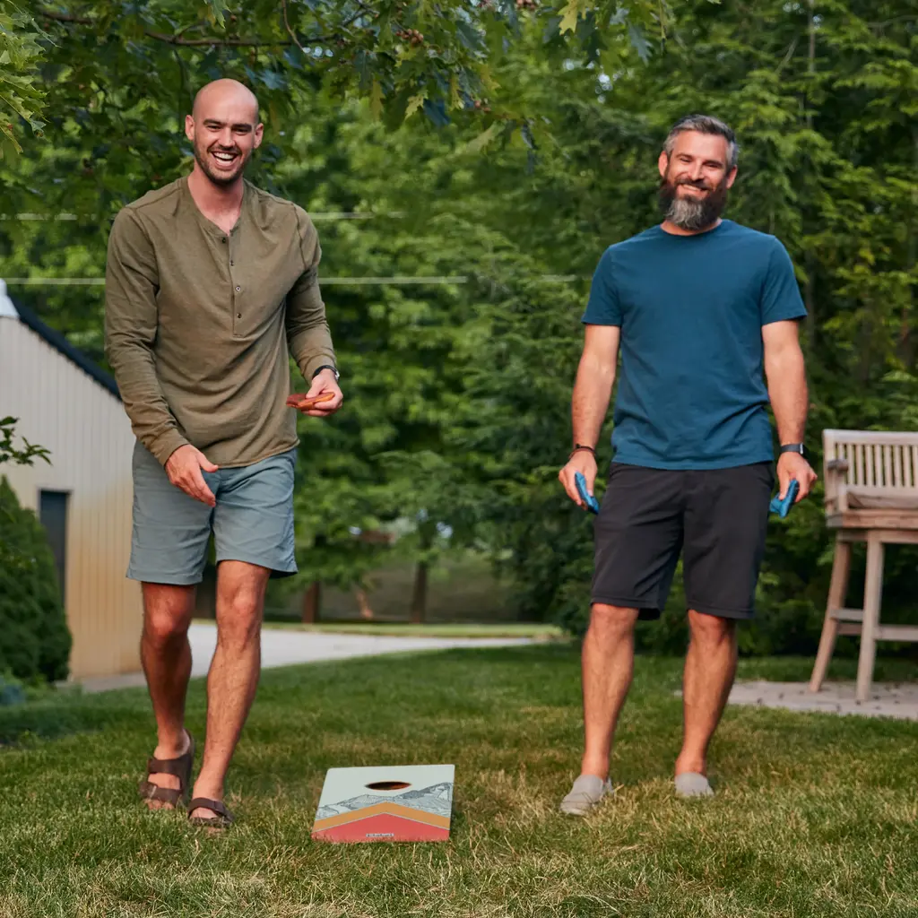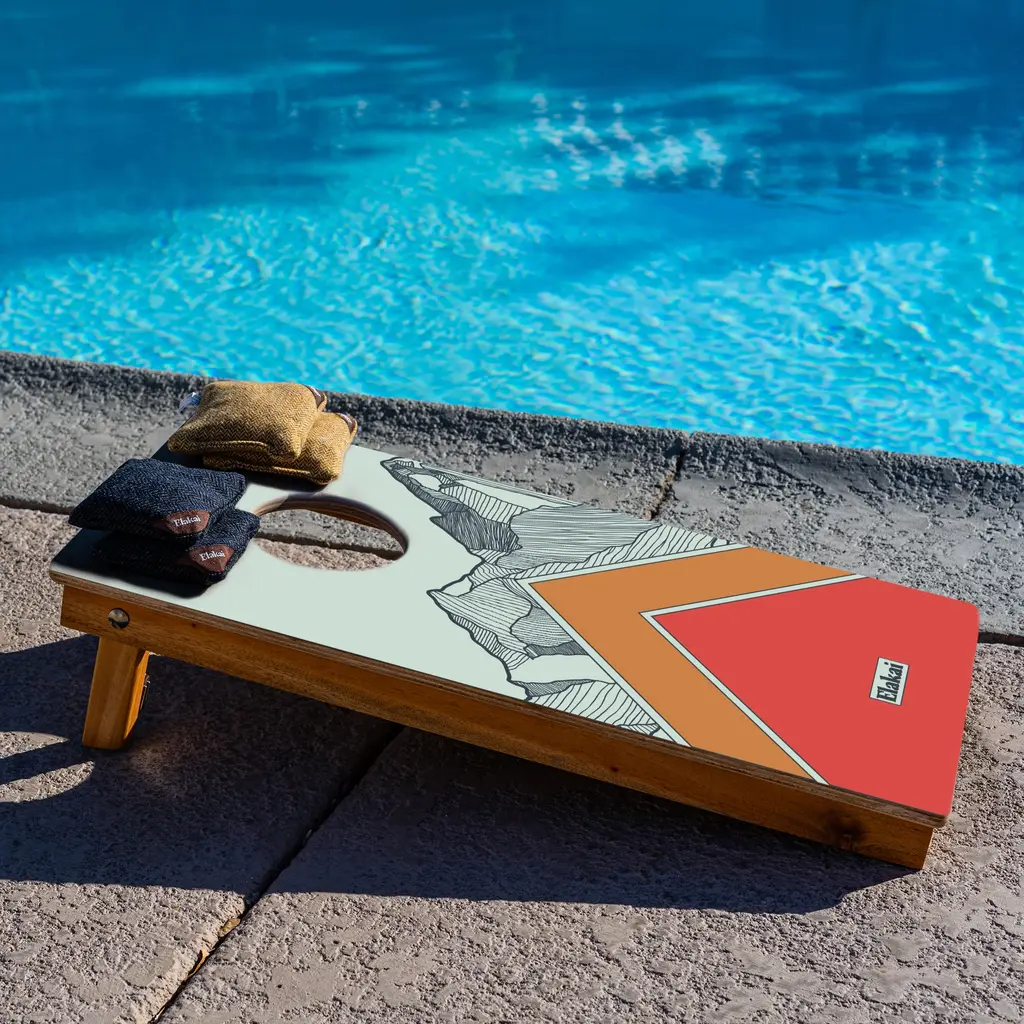 Carefully crafted from the finest materials, this one-by-two-foot regulation cornhole board set features a premium grade plywood deck with a beautiful mahogany frame. Outdoor-inspired graphics are printed directly to the wood surface. Proud partners of the National Forest Foundation and 1% for the Planet, Elakai is dedicated to protecting the environment as well as investing in social experiences. Their games are handmade from carefully-selected premium materials. Processed in small batches to the highest standards, each piece is unique and durable. Enjoy the outdoors with Elakai. Note: When not in use, this product needs to be stored indoors.