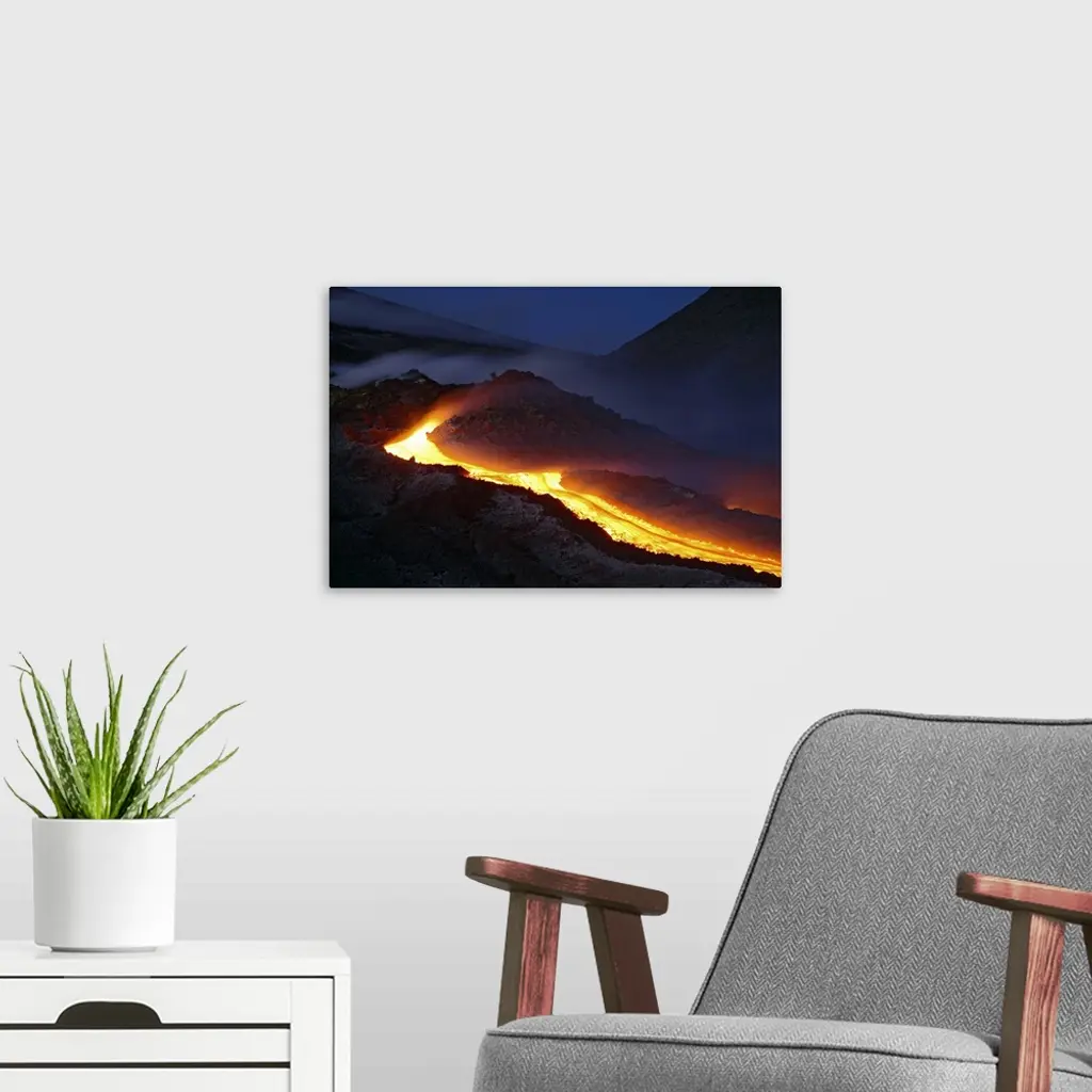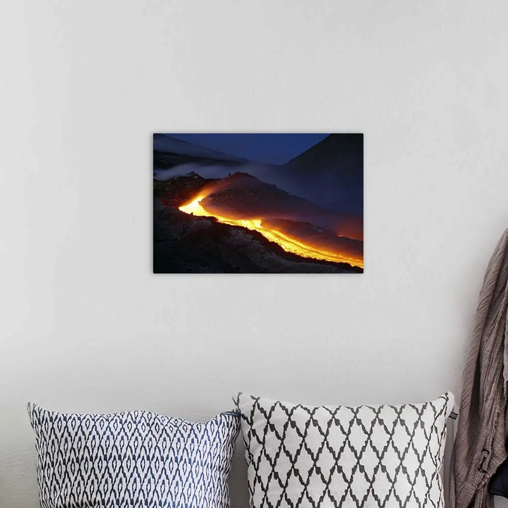 Mount Etna lava flow at night Sicily Italy wall art for home and office decor. Discover canvas art prints, photos, mural, big canvas art and framed wall art in GreatBigCanvas.com's varied collections.