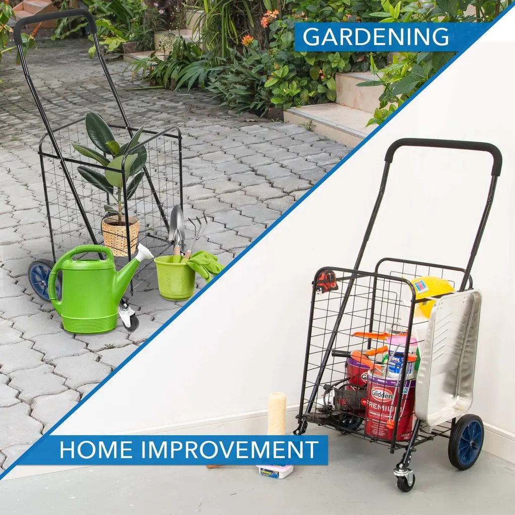 Mount-It! rolling utility shopping cart is your ultimate solution to moving heavy objects around. Save your back and carry things around with the right tool for the job. This versatile cart is perfect for use at home, office, business, travel or shopping. Let our rugged dolly do the heavy lifting. The trolley folds down to couple inches thick for easy storage. The wheels and the nose folds in and the handle retracts for convenient and compact storage in your vehicle or anywhere around the house and the office.It is very easy to use and comes fully assembled. Just extend the telescoping handle, step on the nose to fold it out and load it up 3 inch diameter rugged wheels make it easy to balance and move heavy objects. They roll well on any hard surface as well as on carpets.