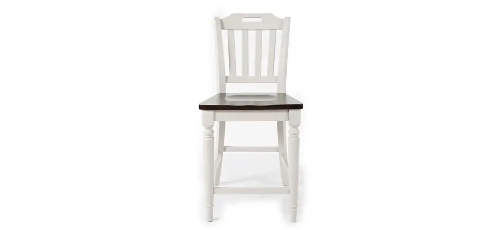 A striking pairing of a rich, dark top with a soft grey base, the Mount Vernon 7-pc. counter-height dining set provides an inviting stage for entertaining. With a leaf extension, the table is able to accommodate up to eight people. This set was made for dinner parties and family dinners. Solid wood construction offers the promise to withstand the wear and tear of those same dinners- and look good doing it.
